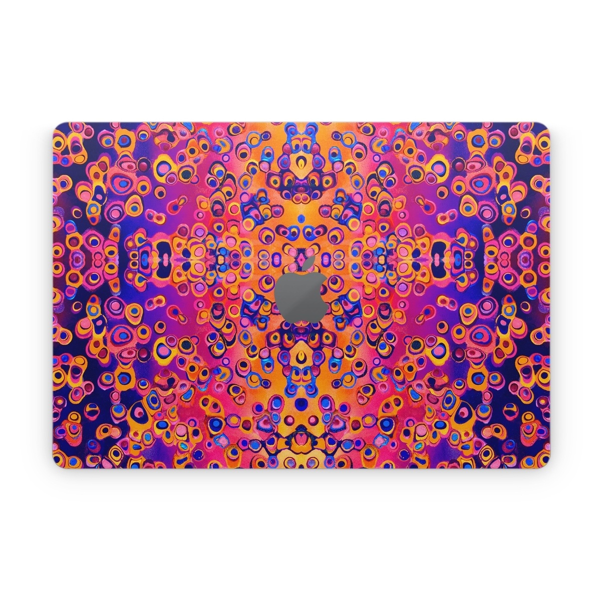 iStyles Apple MacBook Skin design of Pattern, Psychedelic art, Symmetry, with orange, purple, blue, pink colors, and tagged with patterns, abstract, bright, colors, pattern.