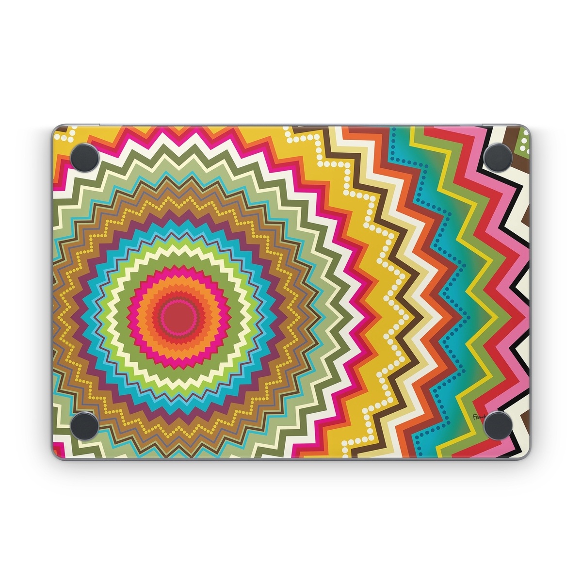 iStyles Apple MacBook Skin design of Colorfulness, Textile, Art, Creative arts, Triangle, Rectangle, Symmetry, Circle, Pattern, Tints and shades, with red, orange, yellow, pink, green, white, black, blue, brown colors, and tagged with patterns, balance, bright, circle, circles, color, colorful, colors, mandala, spiral, zigzag.
