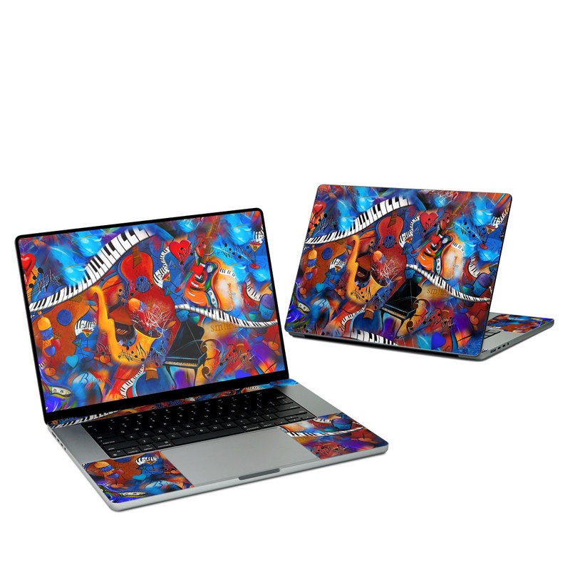 iStyles Apple MacBook Skin design of Art, Graffiti, Mural, Modern art, Street art, Psychedelic art, Fictional character, Graphic design, Visual arts, Animated cartoon, with black, red, blue, gray, green colors, and tagged with music.