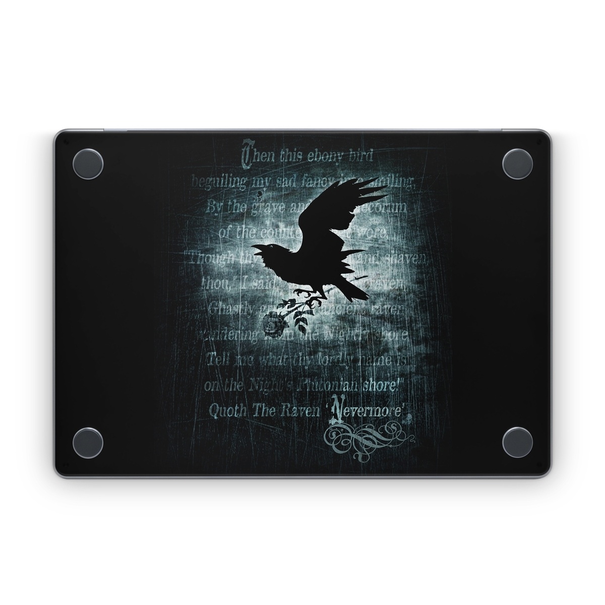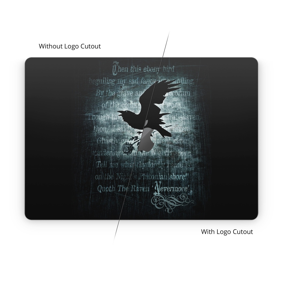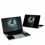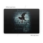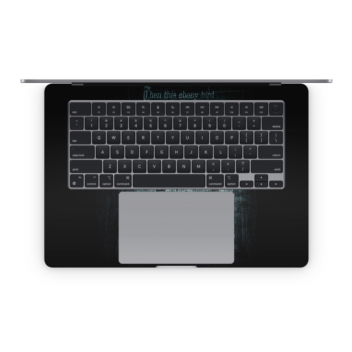 iStyles Apple MacBook Skin design of Bird, Text, Wing, Graphic design, Darkness, Font, Illustration, Graphics, with black, white, blue colors, and tagged with signs, flowers.