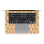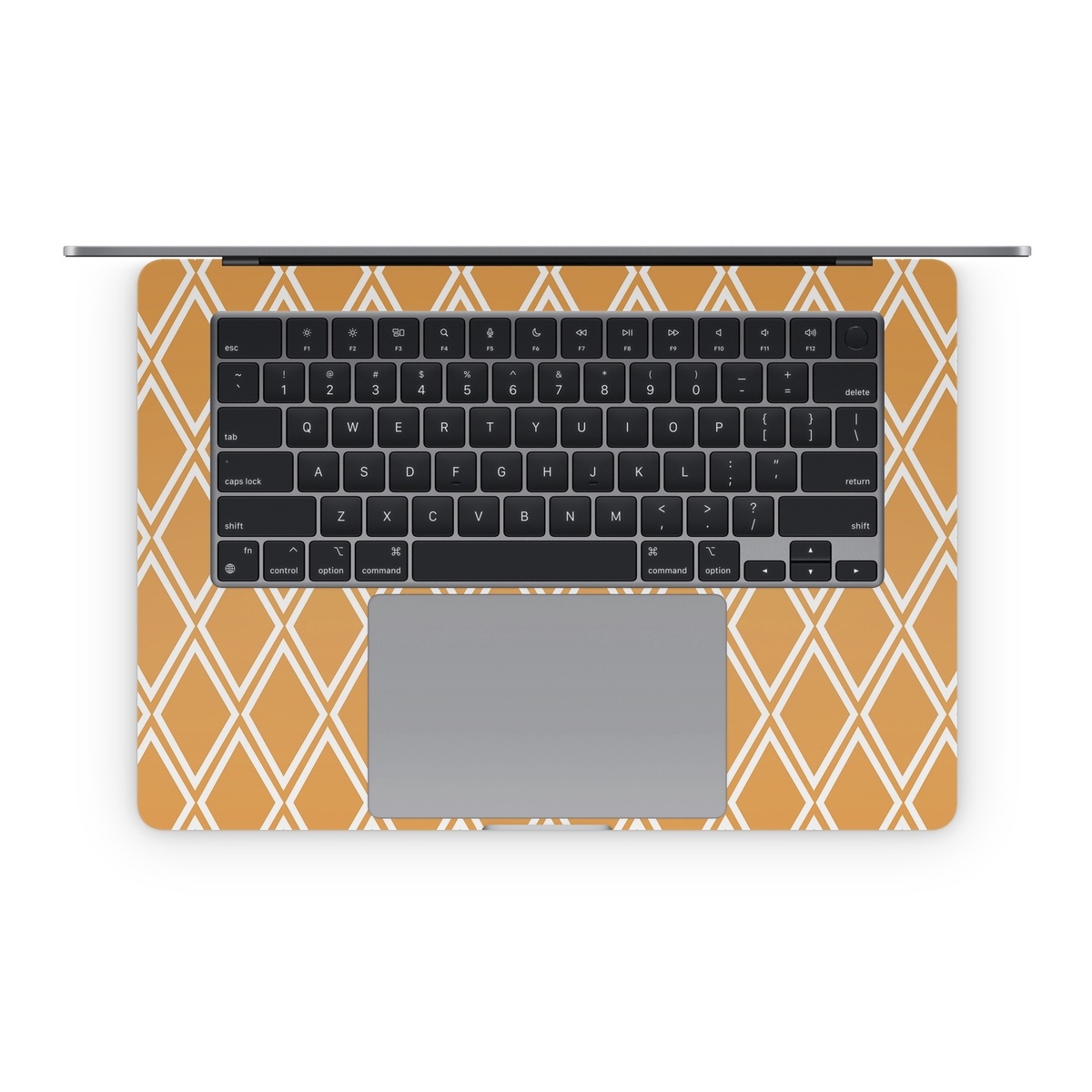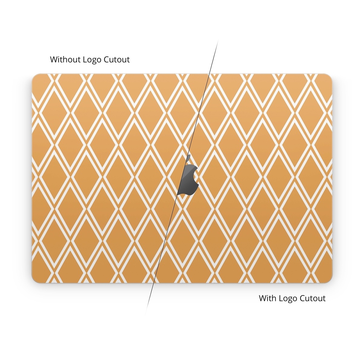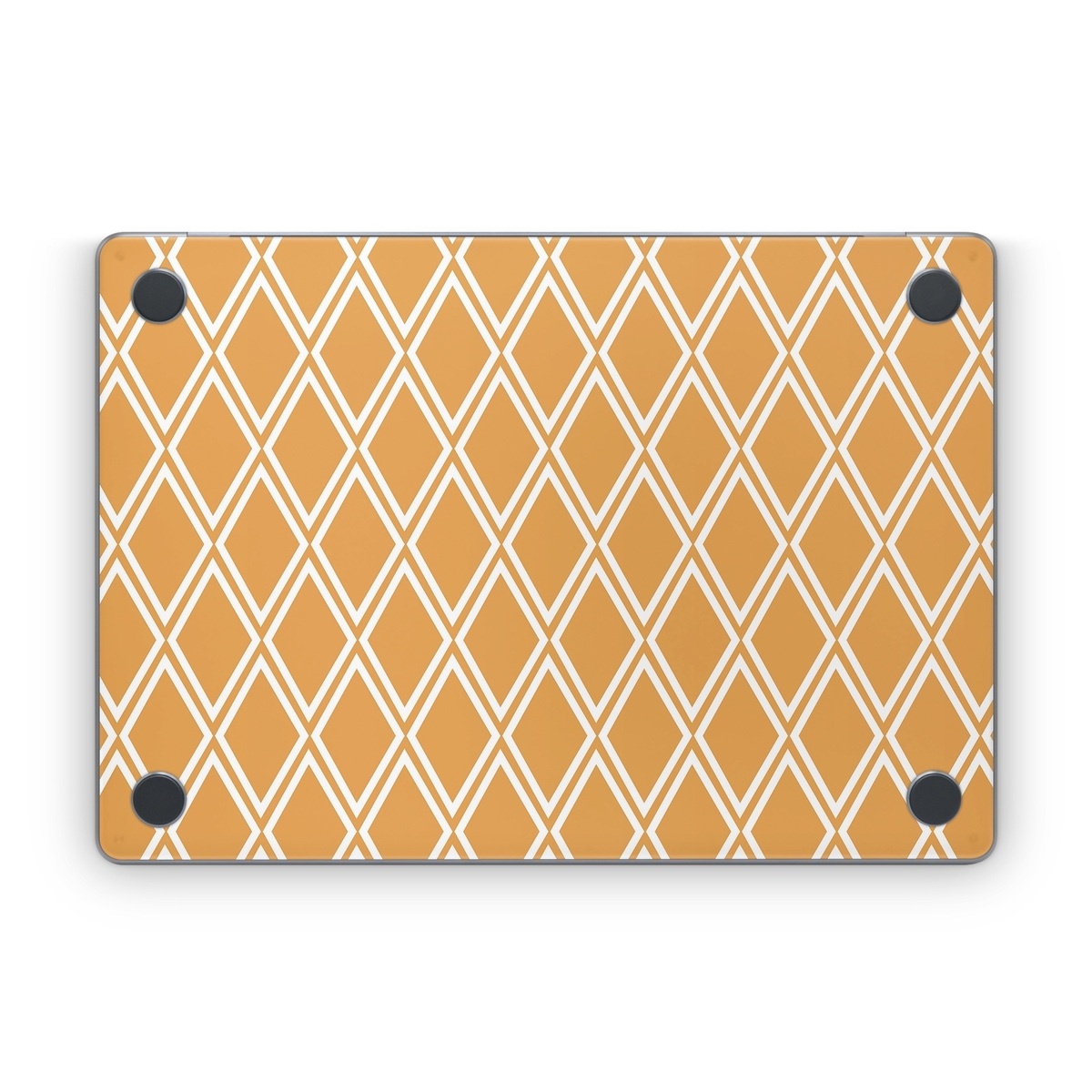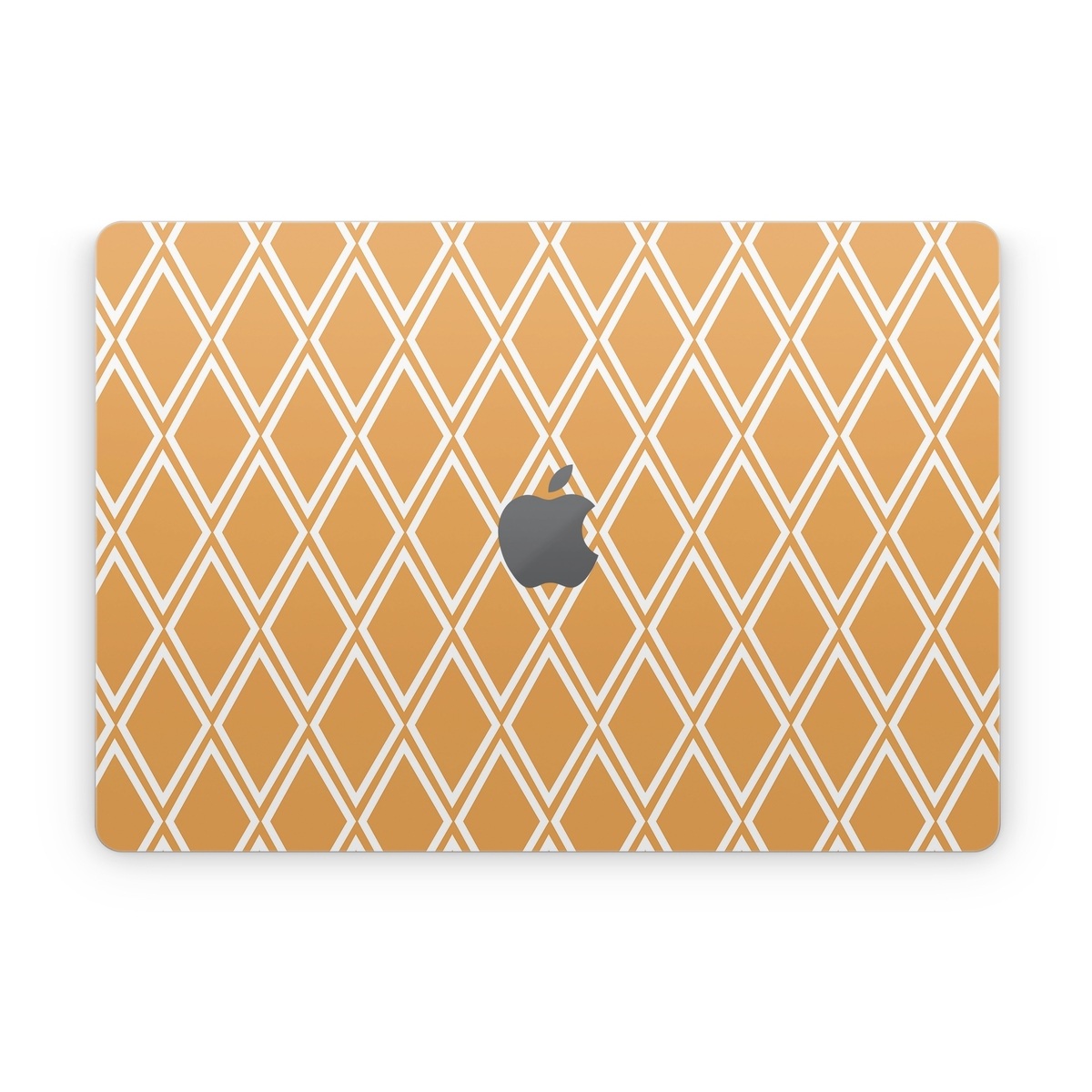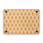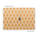 iStyles Apple MacBook Skin design of Textile, Orange, Font, Material property, Symmetry, Rectangle, Pattern, Circle, Parallel, Tints and shades, with orange, white colors, and tagged with patterns, checks.