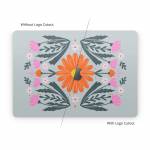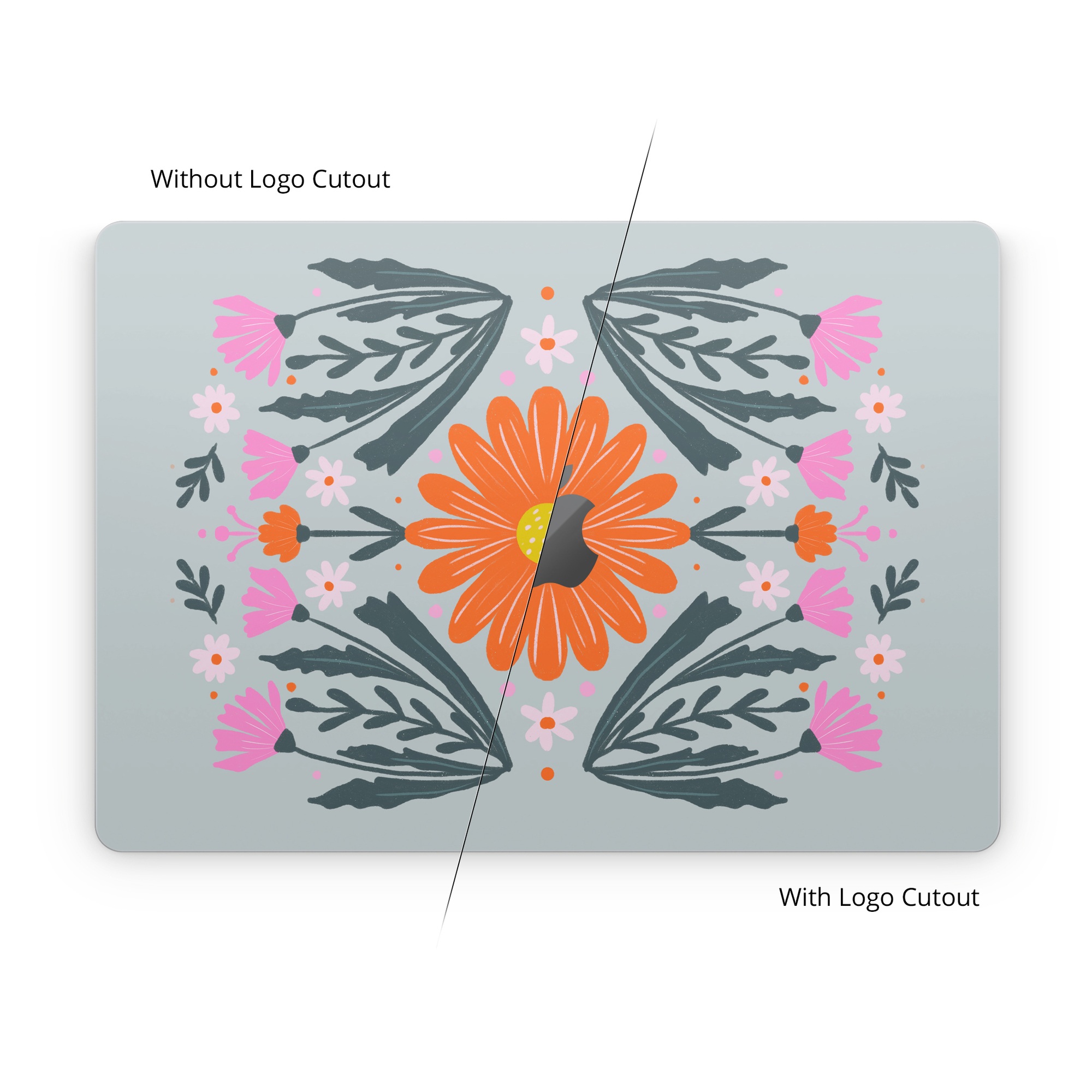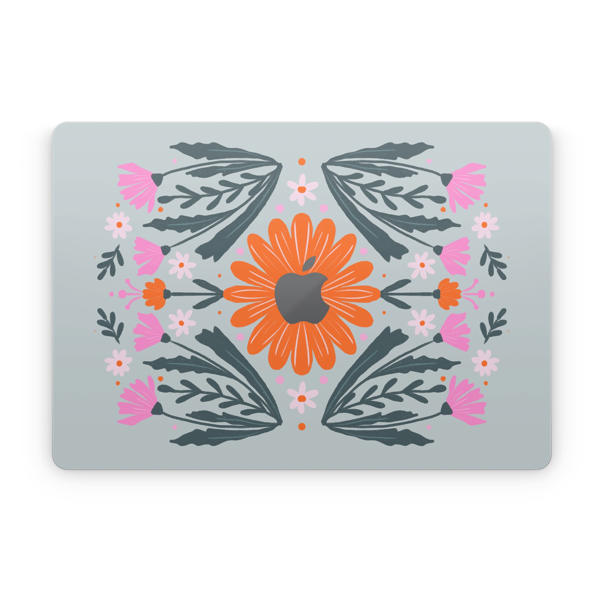 iStyles Apple MacBook Skin design of Petal, Gesture, Font, Flower, Pattern, Art, Creative arts, Floral design, Illustration, Flowering plant, with pink, orange, green, white colors, and tagged with patterns, flowers, nature, flowers, leaves, bonquet.