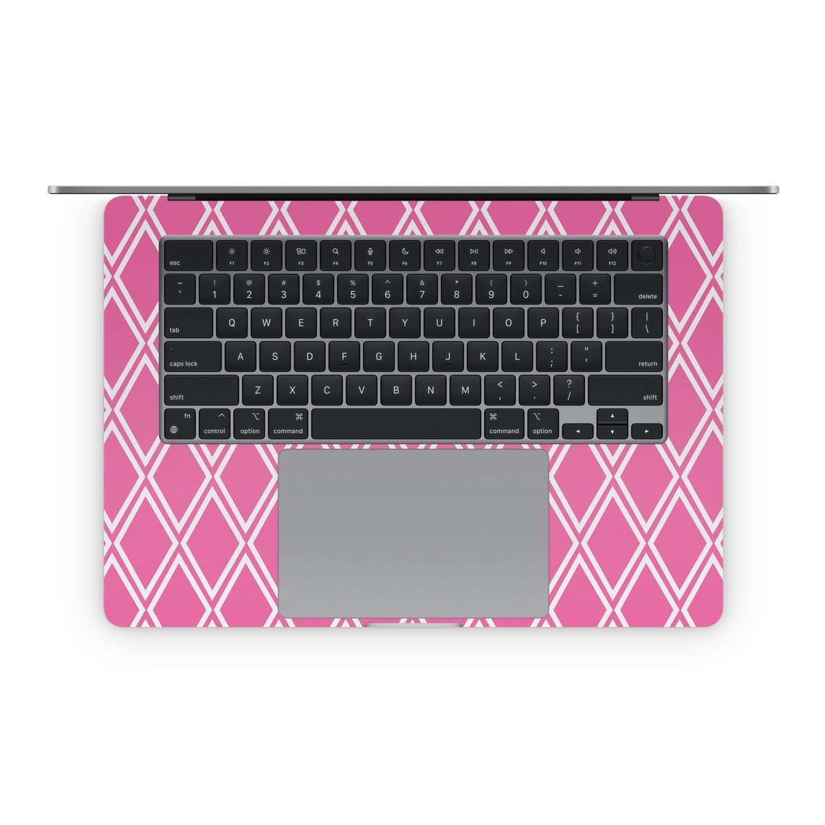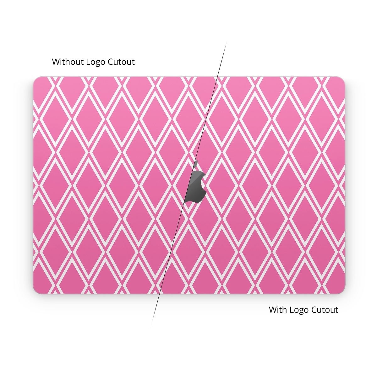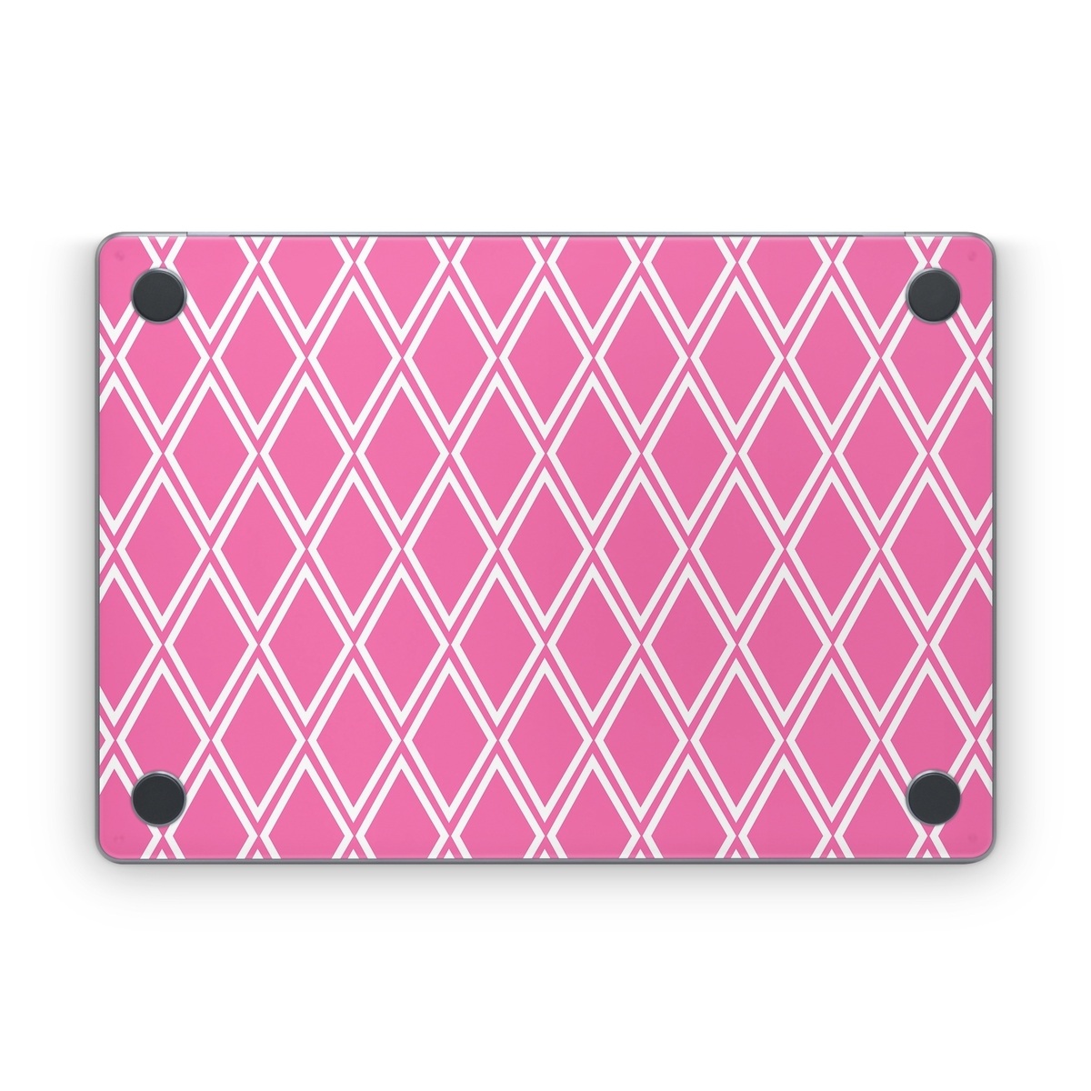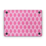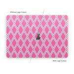 iStyles Apple MacBook Skin design of Pink, Rectangle, Font, Material property, Magenta, Symmetry, Parallel, Pattern, Peach, Circle, with pink, white colors, and tagged with patterns, checks.