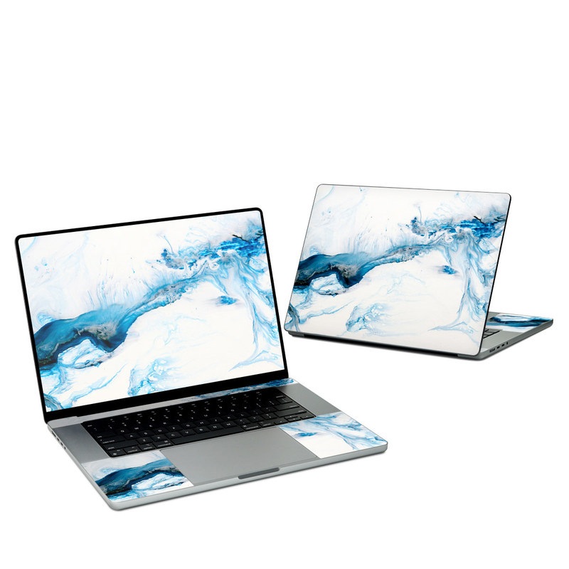 iStyles Apple MacBook Skin design of Glacial landform, Blue, Water, Glacier, Sky, Arctic, Ice cap, Watercolor paint, Drawing, Art, with white, blue, black colors, and tagged with patterns, lookslike, nature.