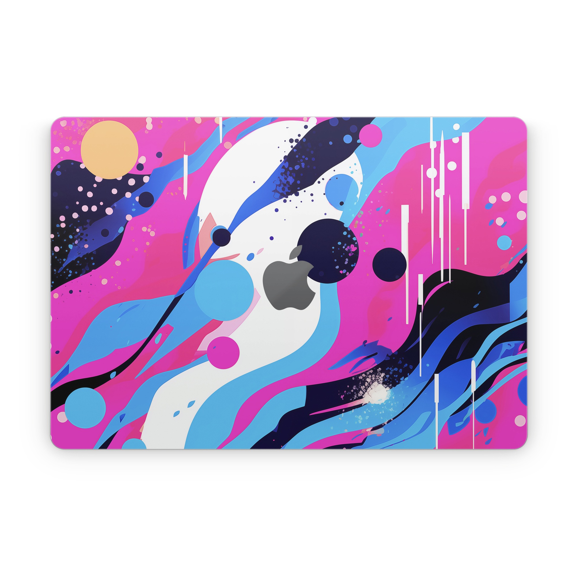 iStyles Apple MacBook Skin design of Organism, Art, Line, Font, Magenta, Art paint, Paint, Pattern, Electric blue, Tints and shades, with pink, blue, white, black, orange colors, and tagged with abstract, abstract, circles, waves.