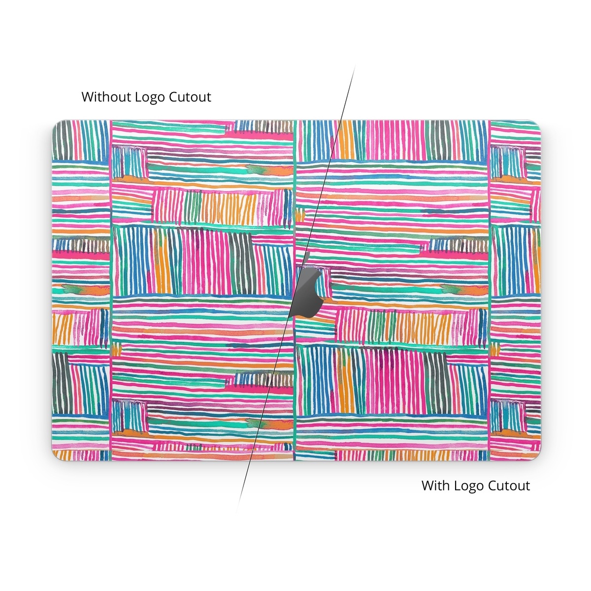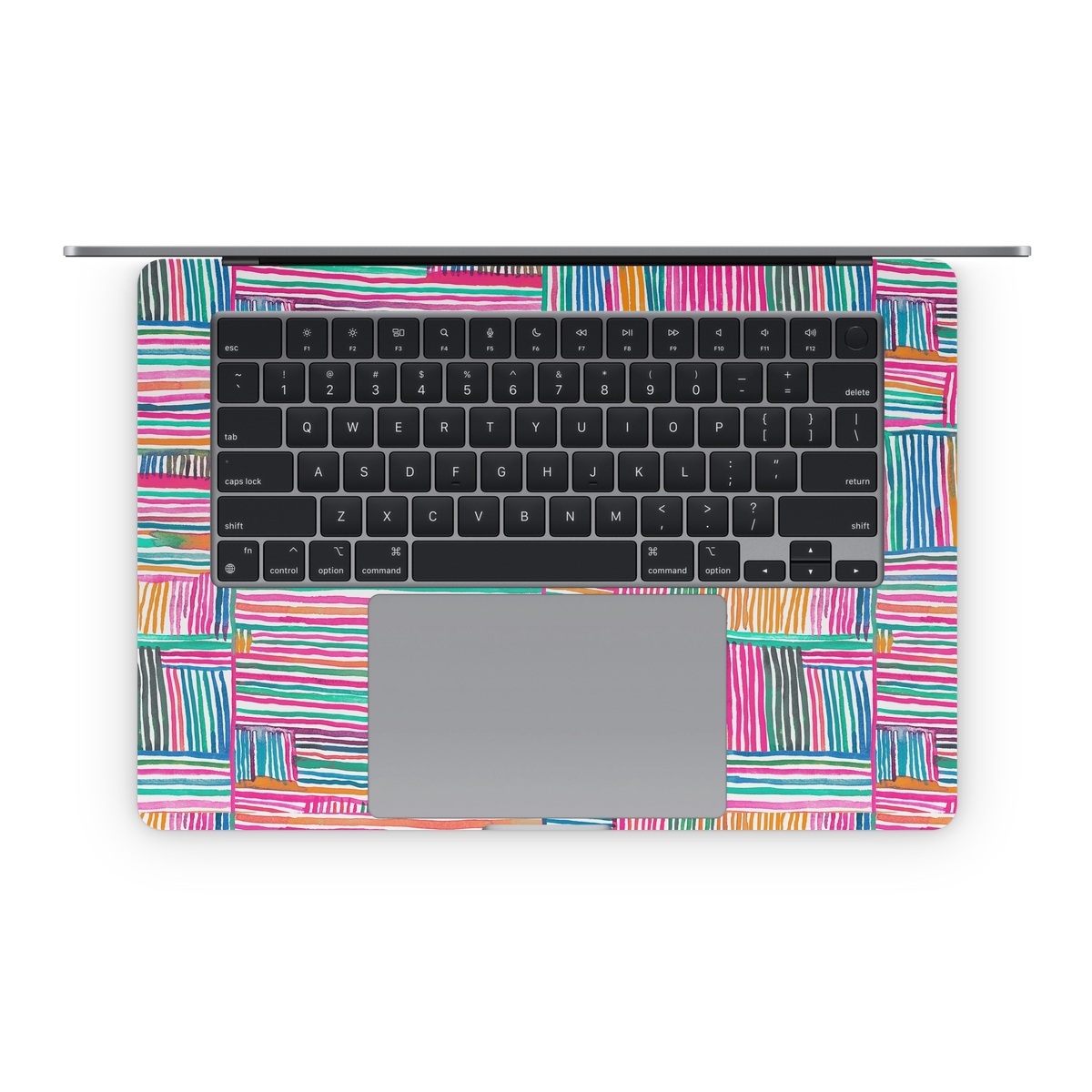 iStyles Apple MacBook Skin design of Colorfulness, Product, Rectangle, Azure, Textile, Art, Aqua, Material property, Magenta, Tints and shades, with white, pink, orange, green, blue, yellow colors, and tagged with patterns, stripes, pattern.