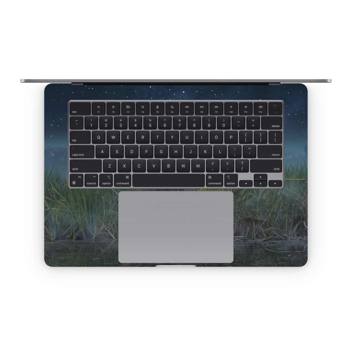 The MacBook inner Skins are precision cut to cover the area around the keyboard - the complexity and large size of this surface does make Skin alignment a little more tricky but the final effect when it's done properly is well worth the effort. What we generally do during Skin application is to first align the Skin to the major physical cutouts, and in this case, that will be the trackpad area. Peel the whole inner Skin off and start with the bottom half; hold the Skin at both ends of the wrist rest area and gently position until it aligns perfectly to the trackpad. One trick will be to keep the top half (the thin stripes that go beside the keyboard) folded back over the bottom half such that the stripes do not get stuck on your MacBook when you're positioning the bottom half. Once you've aligned the trackpad, everything else will fall in place with a little guidance.