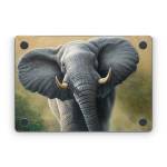 iStyles Apple MacBook Skin design of Terrestrial animal, Elephants and Mammoths, Vertebrate, Wildlife, Mammal, African elephant, Indian elephant, Grassland, Working animal, Tusk, with gray, white, green, brown, yellow, orange colors, and tagged with animals, nature, fineart, animals, elephant.