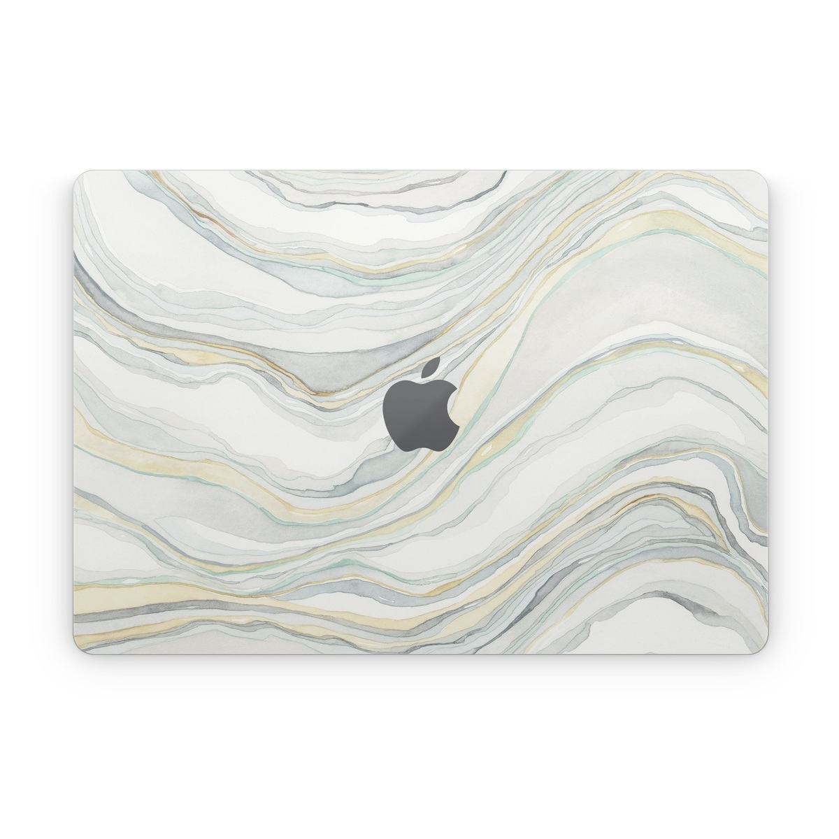 iStyles Apple MacBook Skin design of Line, Pattern, with yellow, white, blue, gray colors, and tagged with patterns, abstract, earthtones, neutral, watercolor.