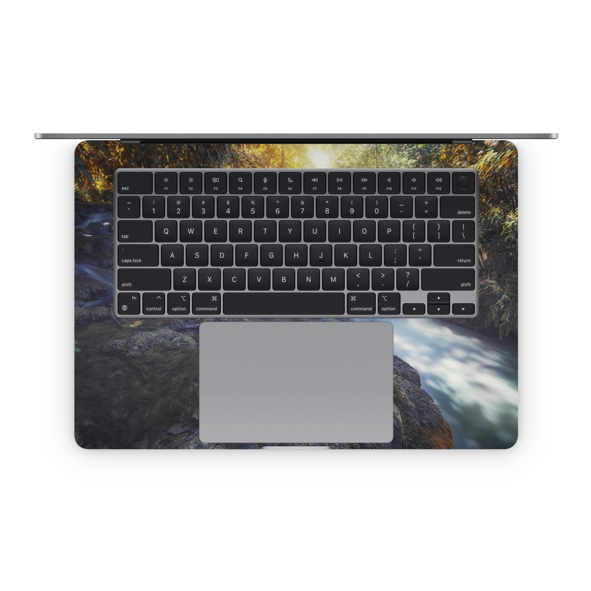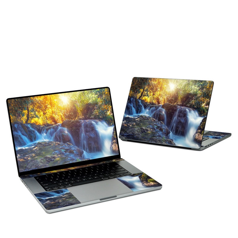 iStyles Apple MacBook Skin design of Waterfall, Natural landscape, Body of water, Nature, Water resources, Water, Watercourse, Stream, Nature reserve, Rock, with gray, yellow, orange, green, white, blue colors, and tagged with nature, photos, hiking, landscapes, outdoors, photography, waterfall.