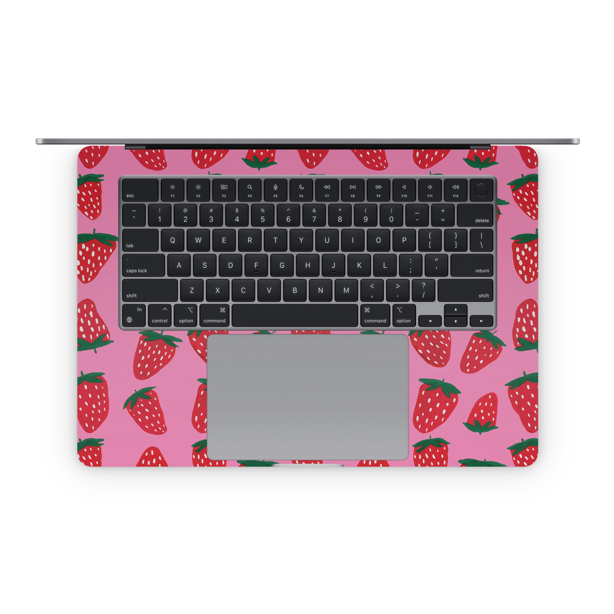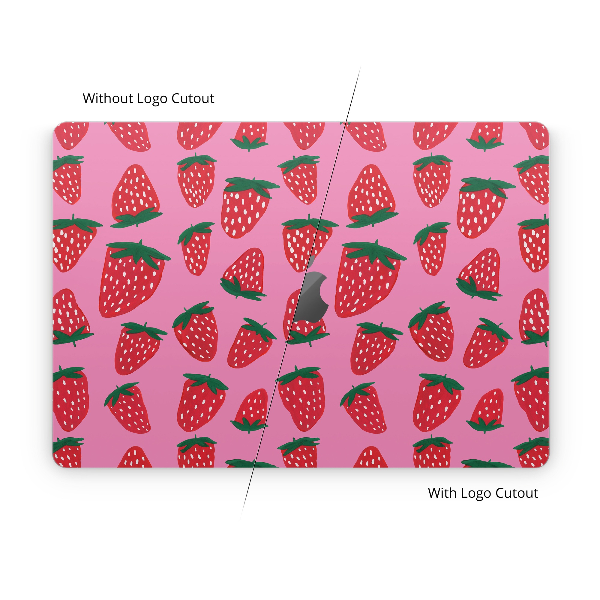 iStyles Apple MacBook Skin design of Textile, Font, Rectangle, Red, Triangle, Pattern, Carmine, Design, Cone, Wrapping paper, with red, green, pink, white colors, and tagged with patterns, objects, strawberry.