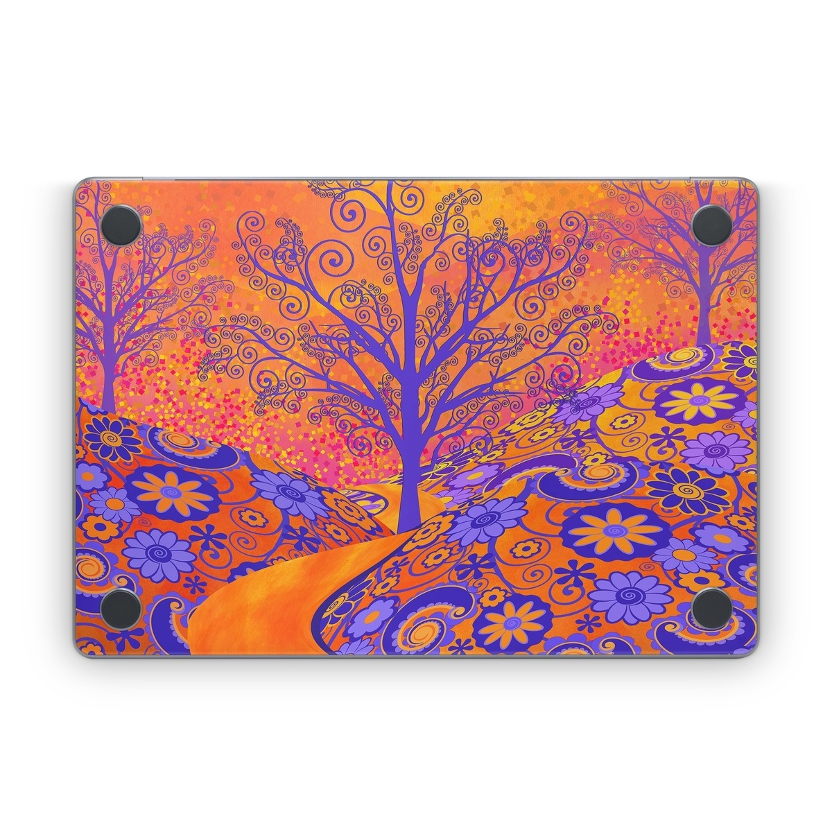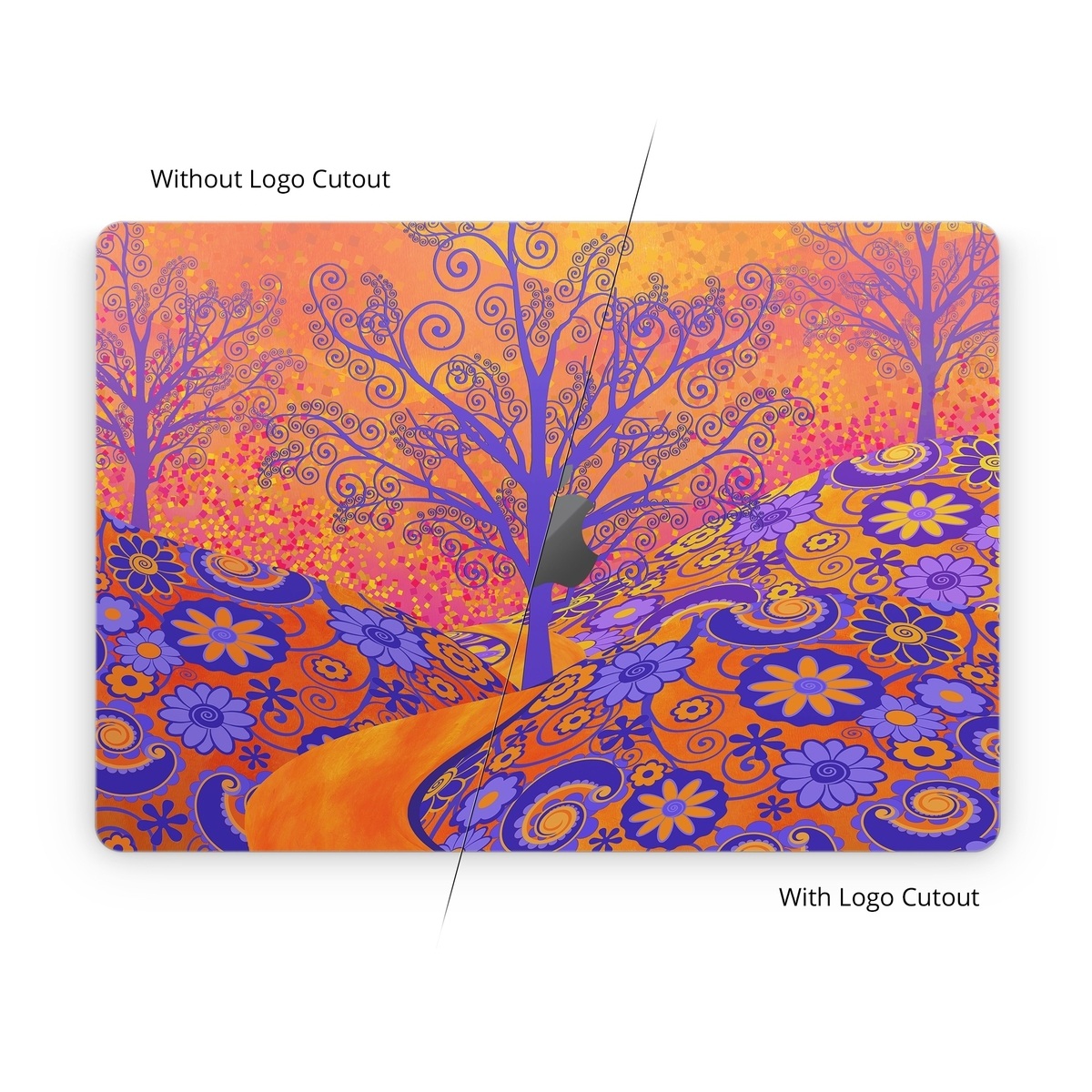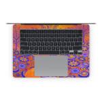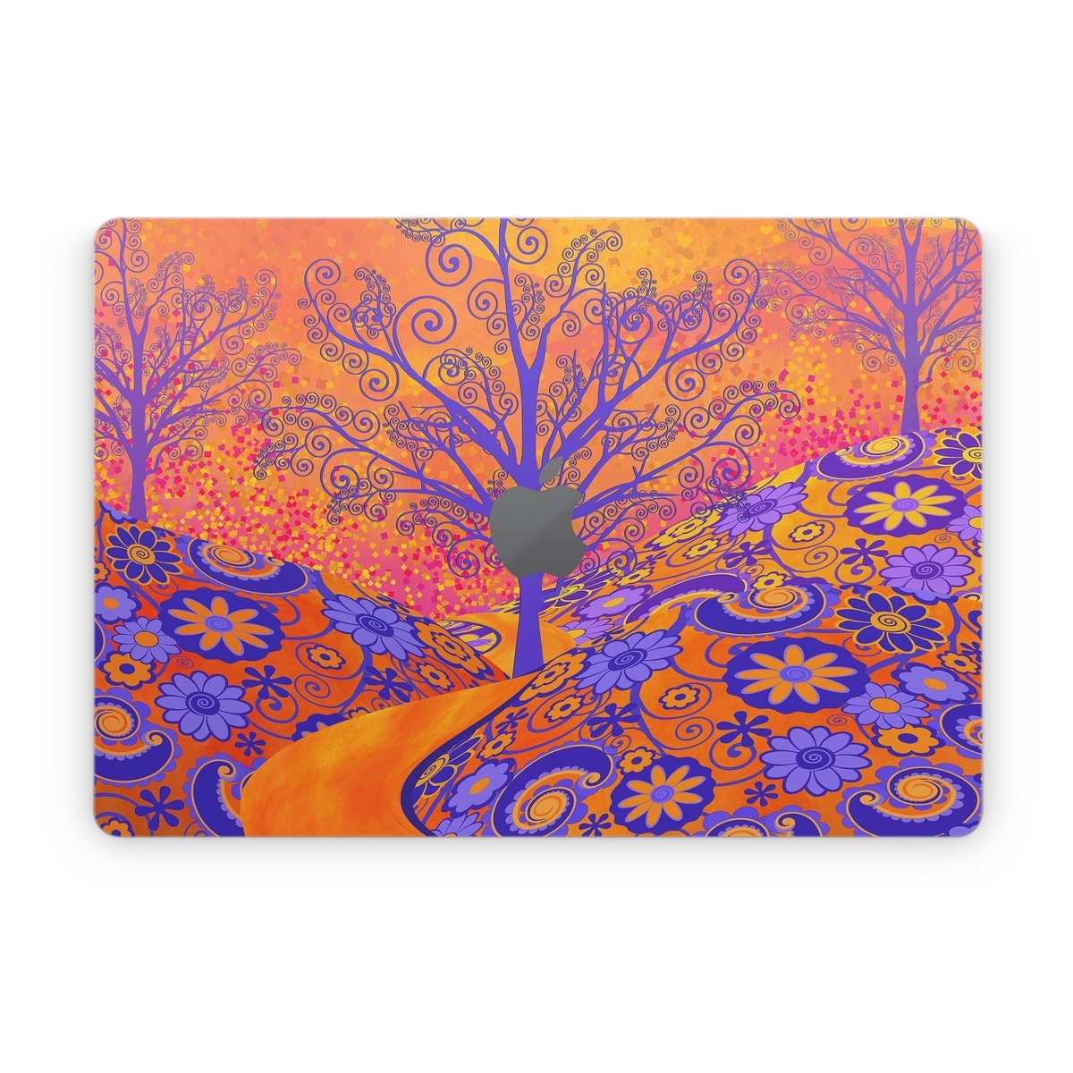 iStyles Apple MacBook Skin design of Blue, Orange, Art, Acrylic paint, Modern art, Pattern, Visual arts, Painting, Majorelle blue, Psychedelic art, with orange, yellow, red, purple colors, and tagged with patterns, nature, flowers, bright, floral, nature, swirl, tree.