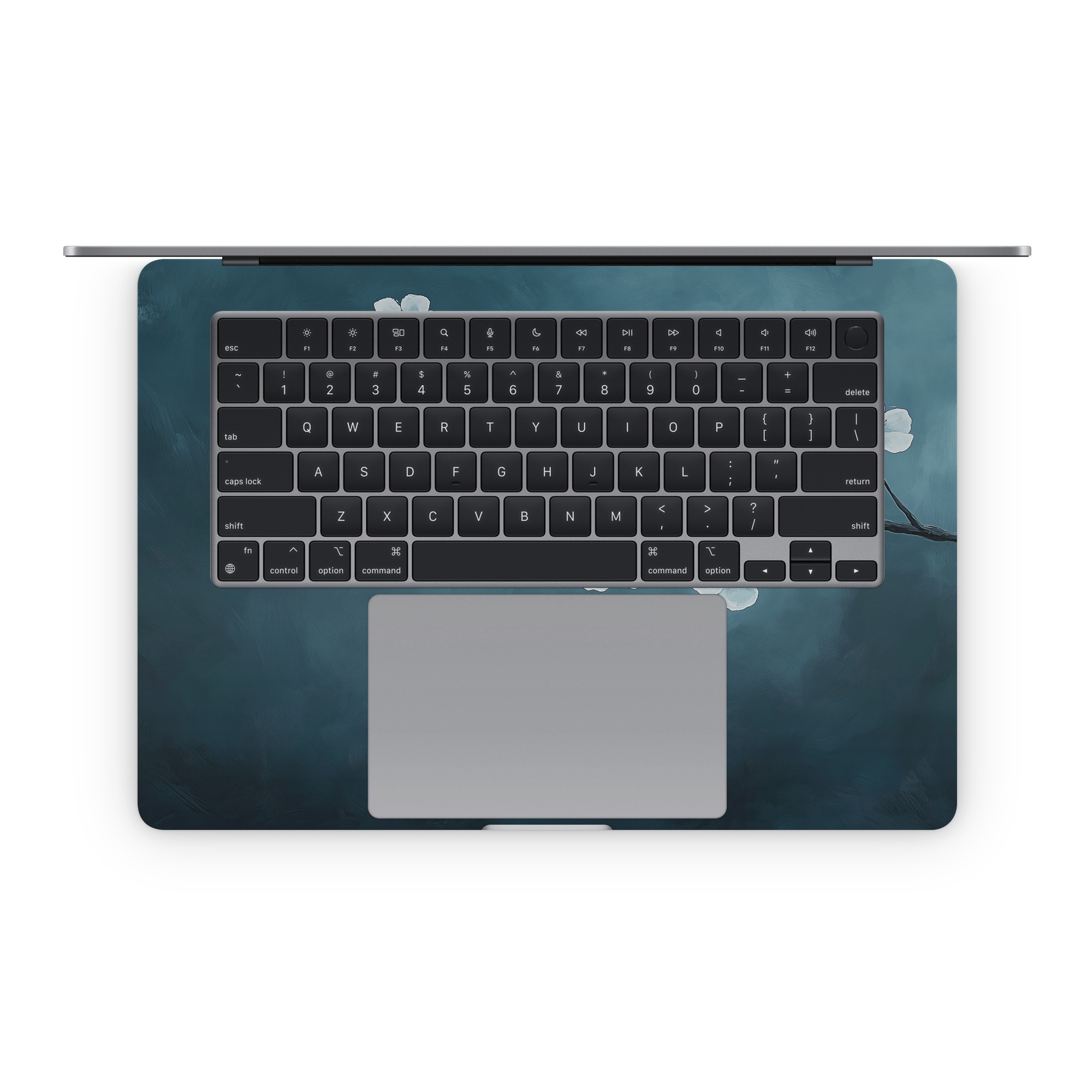 iStyles Apple MacBook Skin design of Flower, Nature, Petal, Branch, Twig, Sky, Flowering plant, Cloud, Blossom, Tree, with black, blue, white, gray colors, and tagged with nature, fineart, flowers, flowers, sakura.