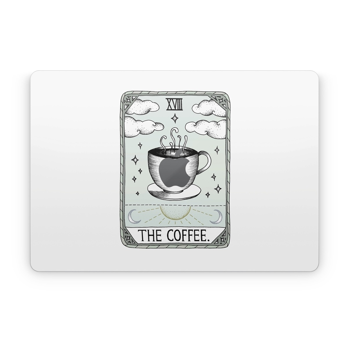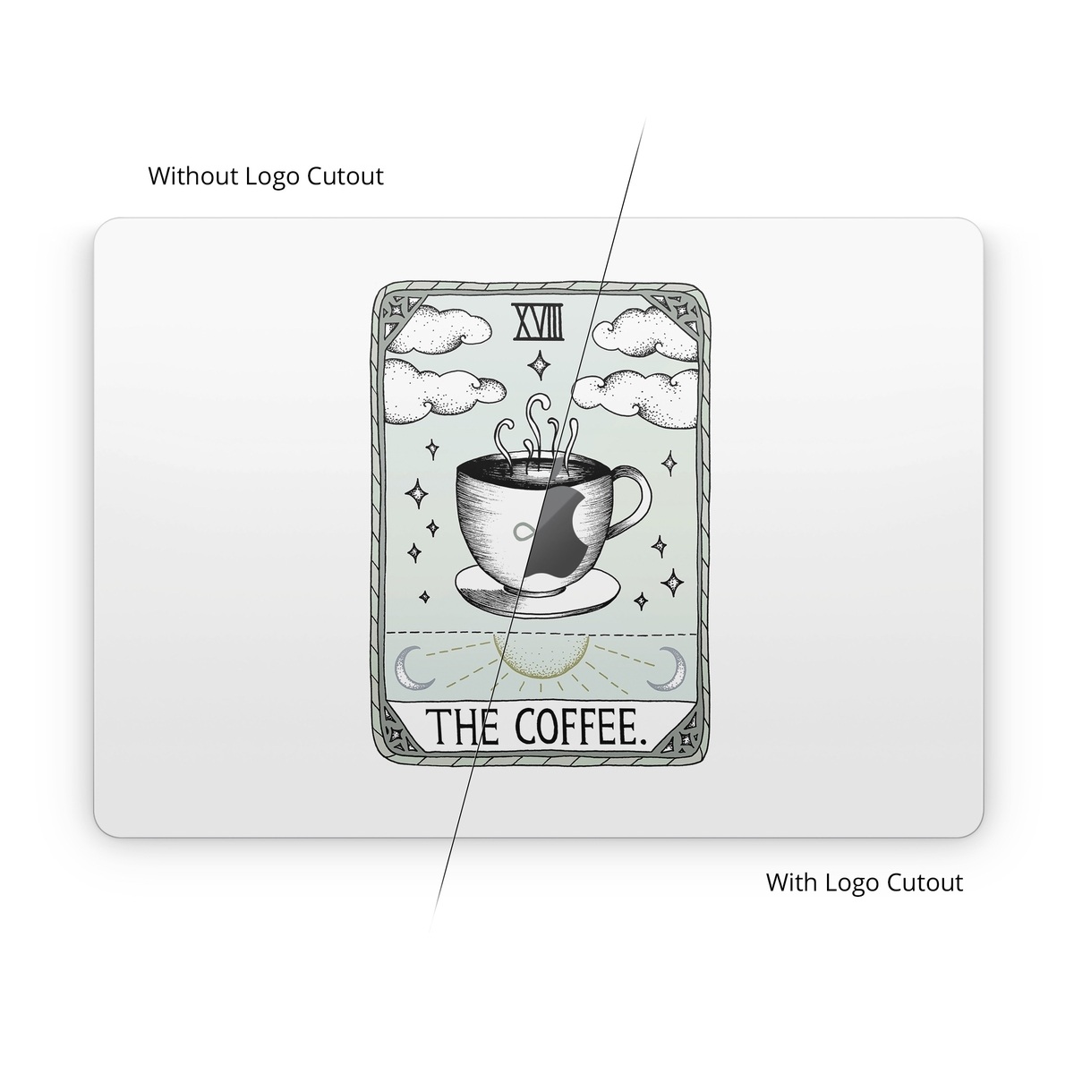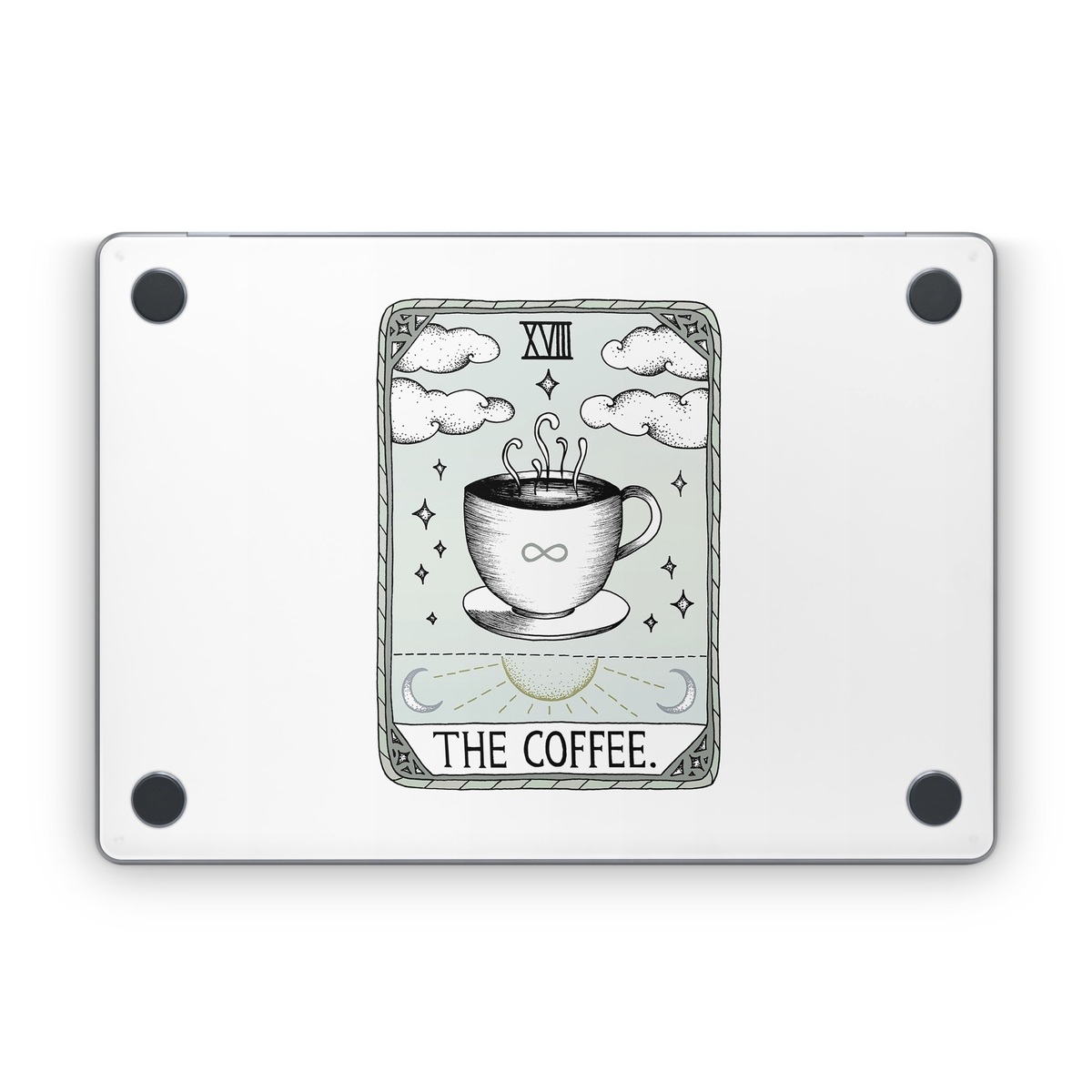 iStyles Apple MacBook Skin design of Cup, Cartoon, Drinkware, Coffee cup, Tableware, Teacup, Illustration, Drink, Line art, with white, black, green, gray, yellow colors, and tagged with objects, signs, space, coffee, handdrawn, pastel, sketch, tarot.