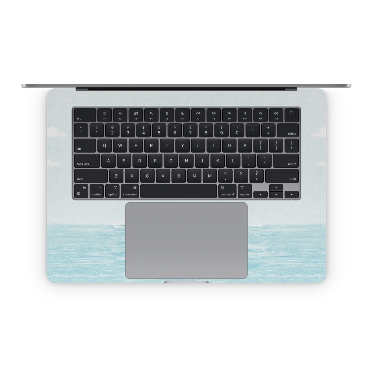 The MacBook inner Skins are precision cut to cover the area around the keyboard - the complexity and large size of this surface does make Skin alignment a little more tricky but the final effect when it's done properly is well worth the effort. What we generally do during Skin application is to first align the Skin to the major physical cutouts, and in this case, that will be the trackpad area. Peel the whole inner Skin off and start with the bottom half; hold the Skin at both ends of the wrist rest area and gently position until it aligns perfectly to the trackpad. One trick will be to keep the top half (the thin stripes that go beside the keyboard) folded back over the bottom half such that the stripes do not get stuck on your MacBook when you're positioning the bottom half. Once you've aligned the trackpad, everything else will fall in place with a little guidance.