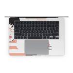 The MacBook inner Skins are precision cut to cover the area around the keyboard - the complexity and large size of this surface does make Skin alignment a little more tricky but the final effect when it's done properly is well worth the effort. What we generally do during Skin application is to first align the Skin to the major physical cutouts, and in this case, that will be the trackpad area. Peel the whole inner Skin off and start with the bottom half; hold the Skin at both ends of the wrist rest area and gently position until it aligns perfectly to the trackpad. One trick will be to keep the top half (the thin stripes that go beside the keyboard) folded back over the bottom half such that the stripes do not get stuck on your MacBook when you're positioning the bottom half. Once you've aligned the trackpad, everything else will fall in place with a little guidance.