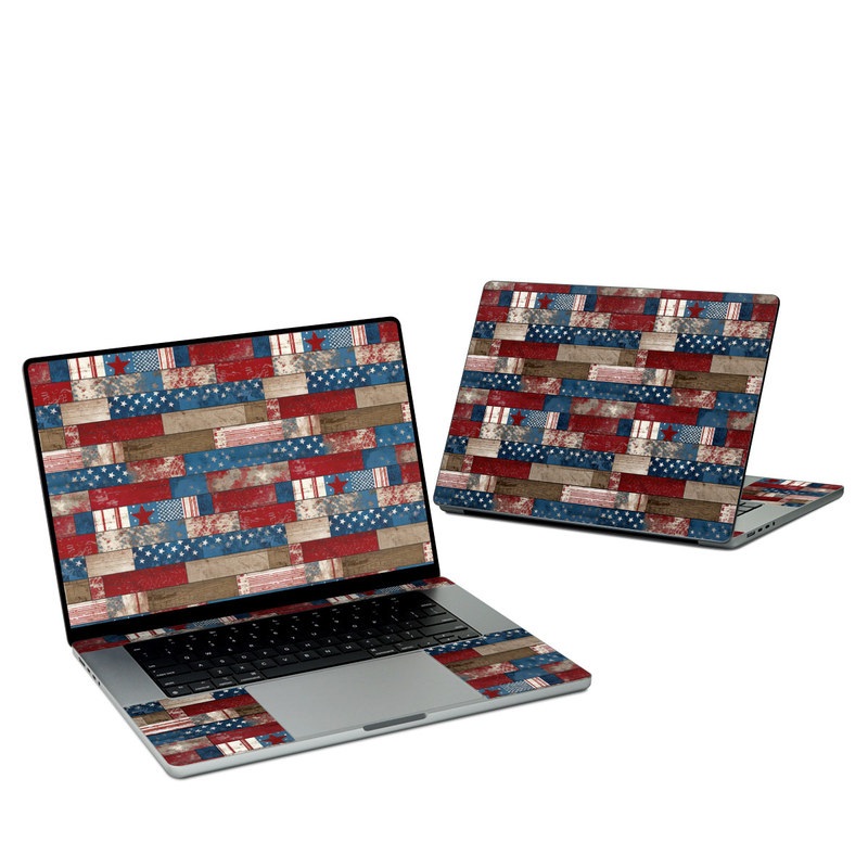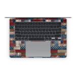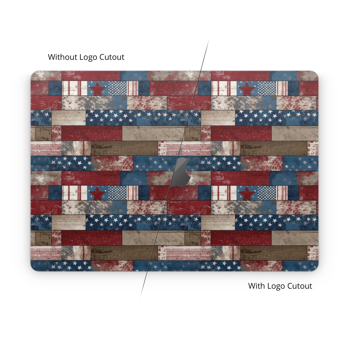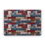 iStyles Apple MacBook Skin design of Photograph, White, Blue, Rectangle, Azure, Textile, Creative arts, Red, Line, Art, with red, blue, white, brown, gray, black colors, and tagged with flags, patterns, signs, united, states, flag, wooden, panels, mosaic, worn.