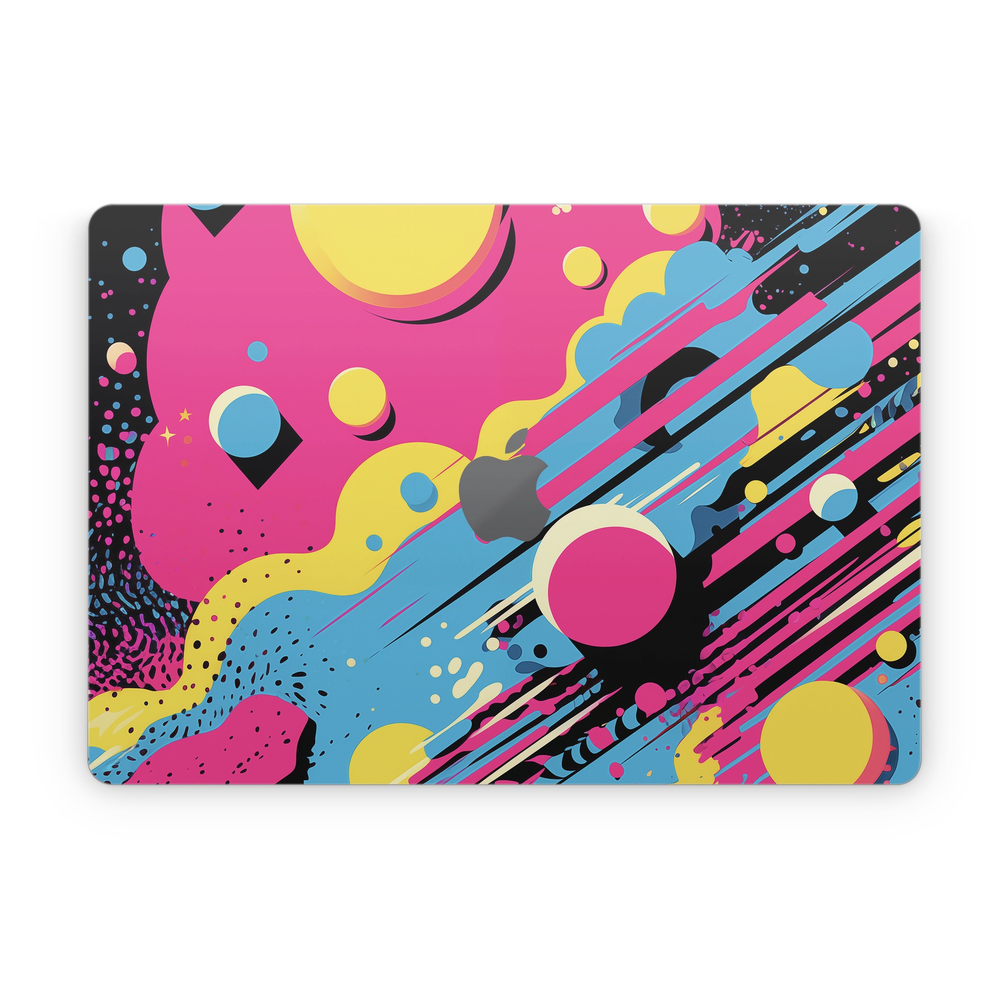 iStyles Apple MacBook Skin design of Colorfulness, Paint, Art, Font, Line, Material property, Magenta, Pattern, Illustration, Circle, with pink, yellow, blue, black, white colors, and tagged with abstract, abstract, circles, waves, lines.