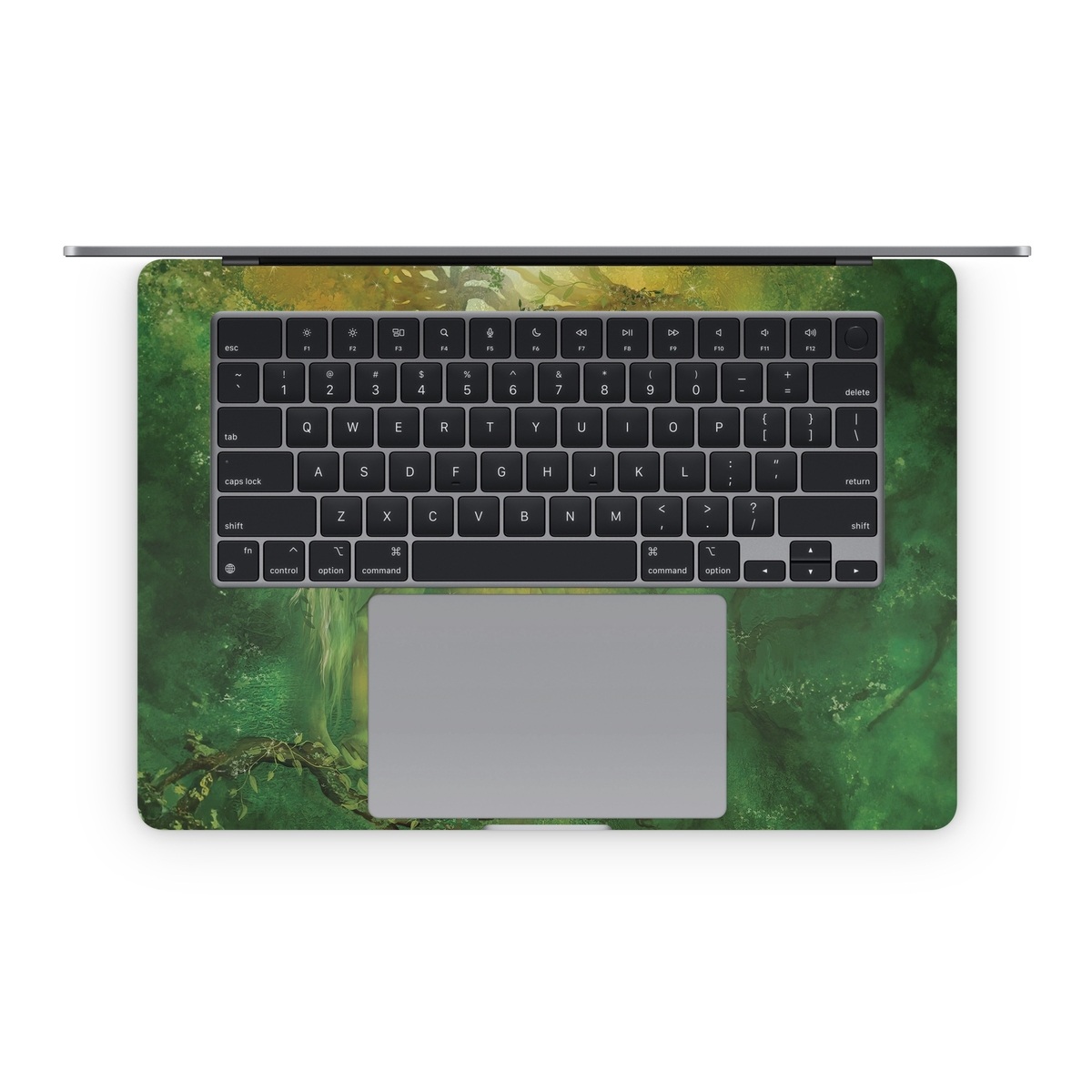 iStyles Apple MacBook Skin design of Nature, Green, Painting, Art, Visual arts, Watercolor paint, Illustration, Modern art, Still life, with green, black, gray colors, and tagged with animals, nature, animals, butterfly, forest, nature, unicorn.
