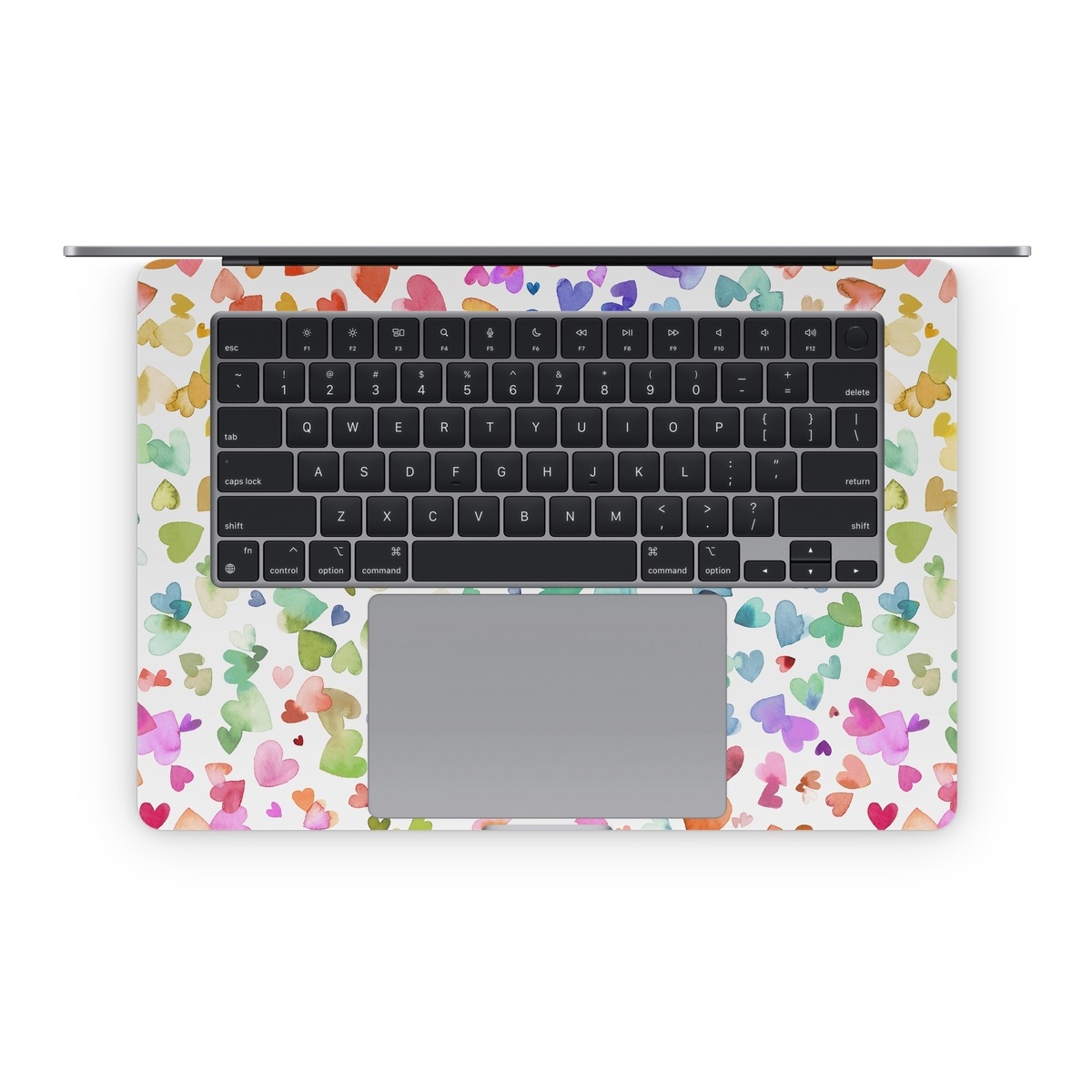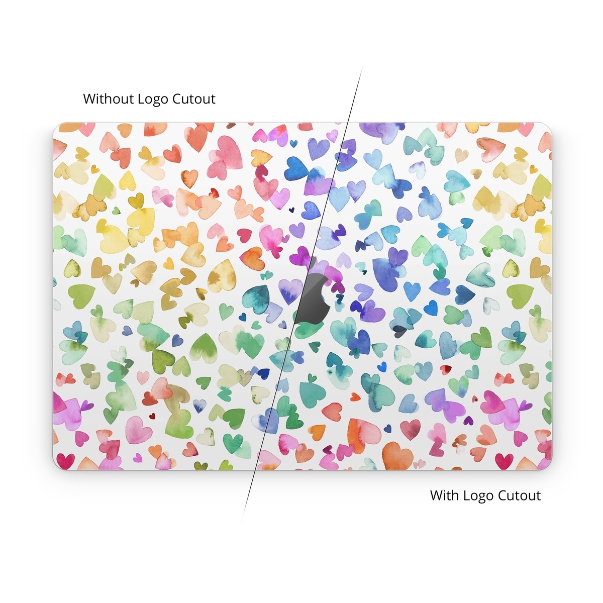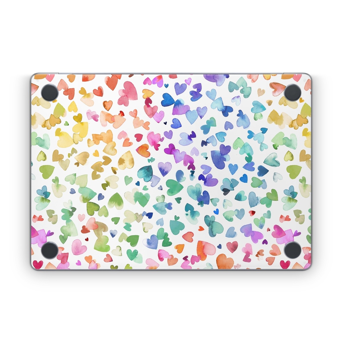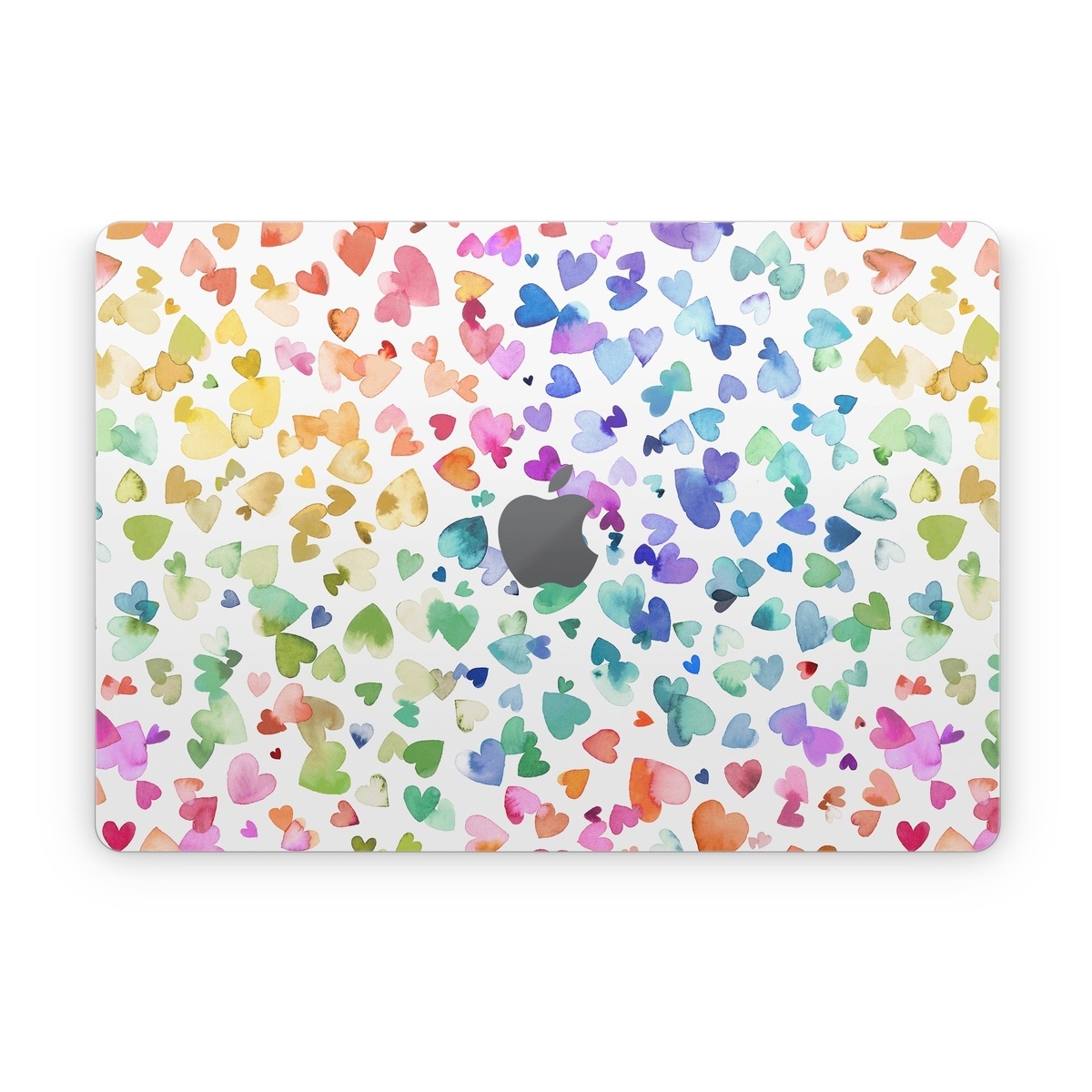 iStyles Apple MacBook Skin design of Colorfulness, Art, Line, Creative arts, Pattern, Circle, Font, Visual arts, Magenta, Painting, with white, blue, green, red, pink, orange, yellow, purple colors, and tagged with patterns, hearts, heart, hearts, love, pattern, pride, rainbow, shapes, valentine, valentinesday.