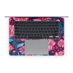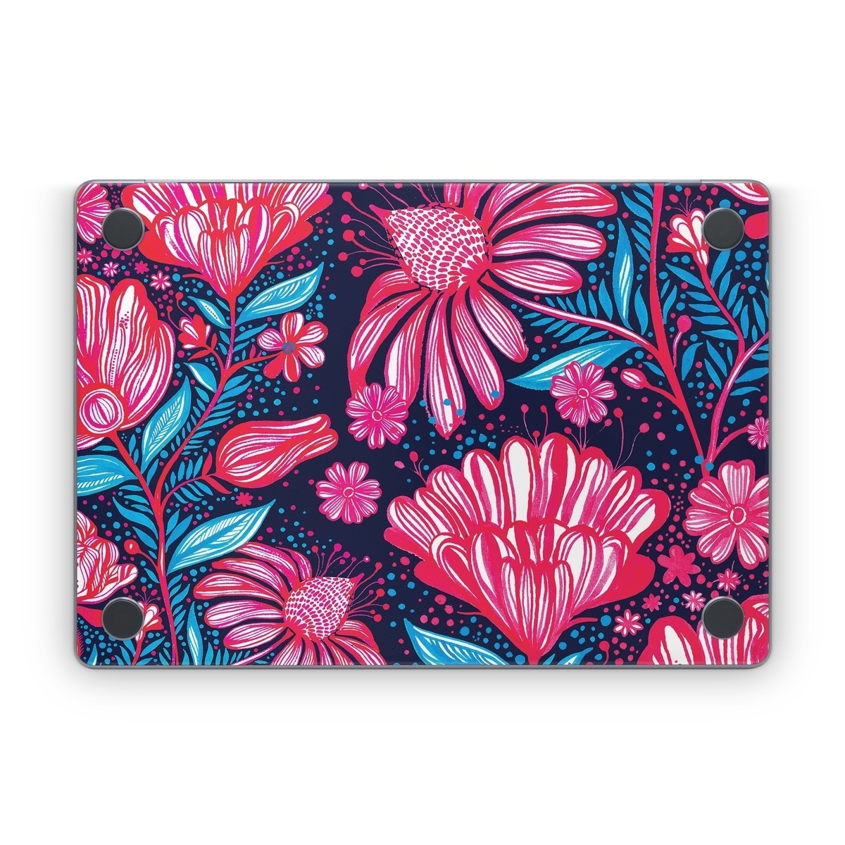 iStyles Apple MacBook Skin design of Pattern, Red, Pink, Floral design, Textile, Design, Flower, Plant, Petal, with black, white, red, blue, pink colors, and tagged with flowers, blue, bright, colorful, flowers, red, white.