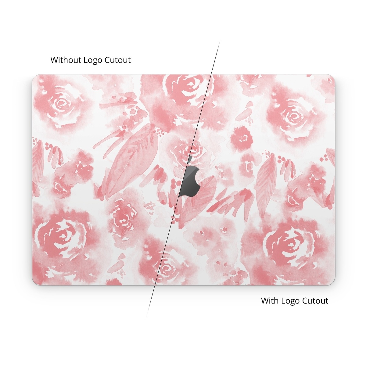 iStyles Apple MacBook Skin design of Pink, Pattern, Rose, Design, Floral design, Rose family, Garden roses, Petal, Flower, Textile, with white, red, pink colors, and tagged with flowers, patterns, blush, blushflowers, flowers, pink, watercolor.