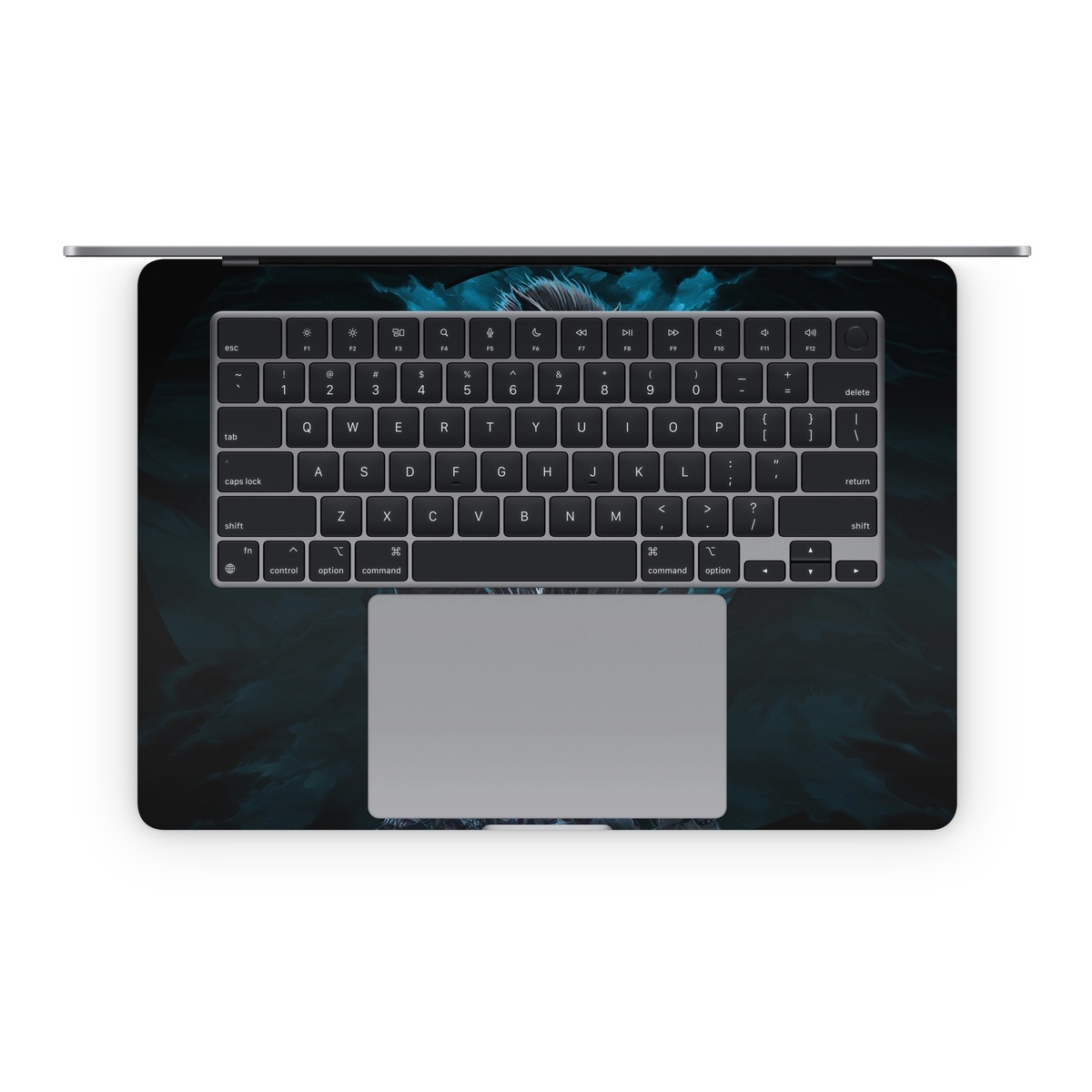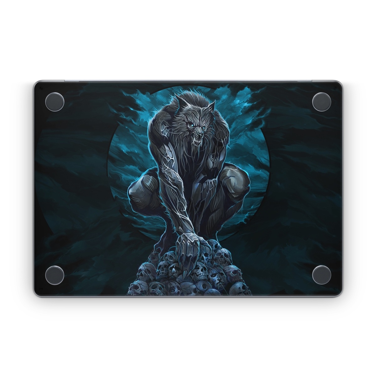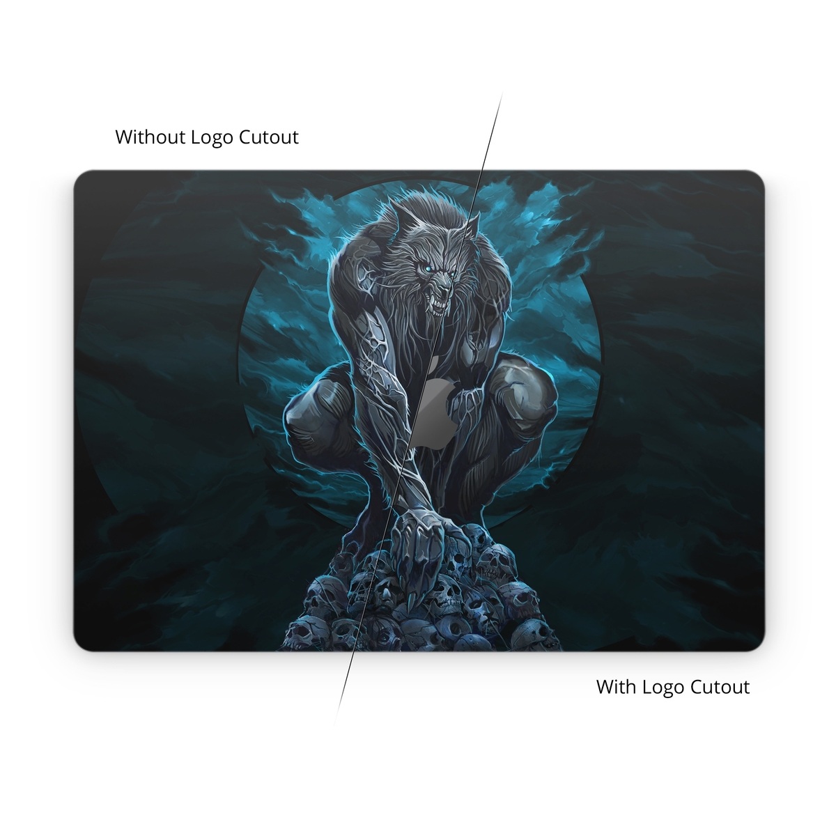 iStyles Apple MacBook Skin design of Illustration, Fictional character, Werewolf, Darkness, Art, Mythology, Graphic design, Mythical creature, Cg artwork, with gray, blue, black colors, and tagged with animals, skulls, fantasy.