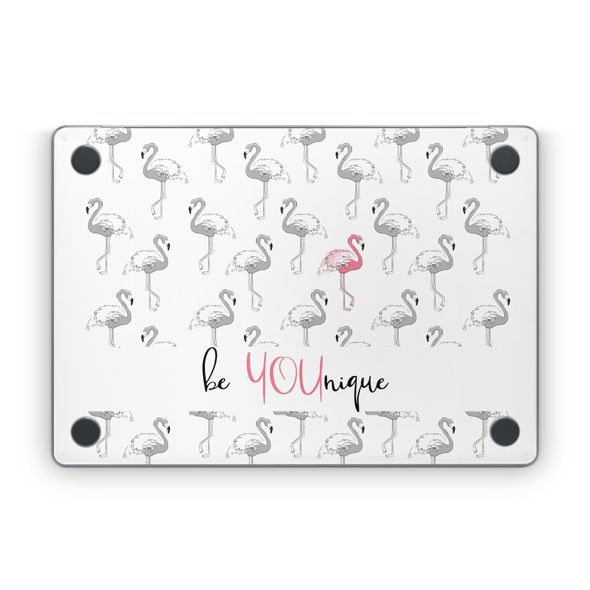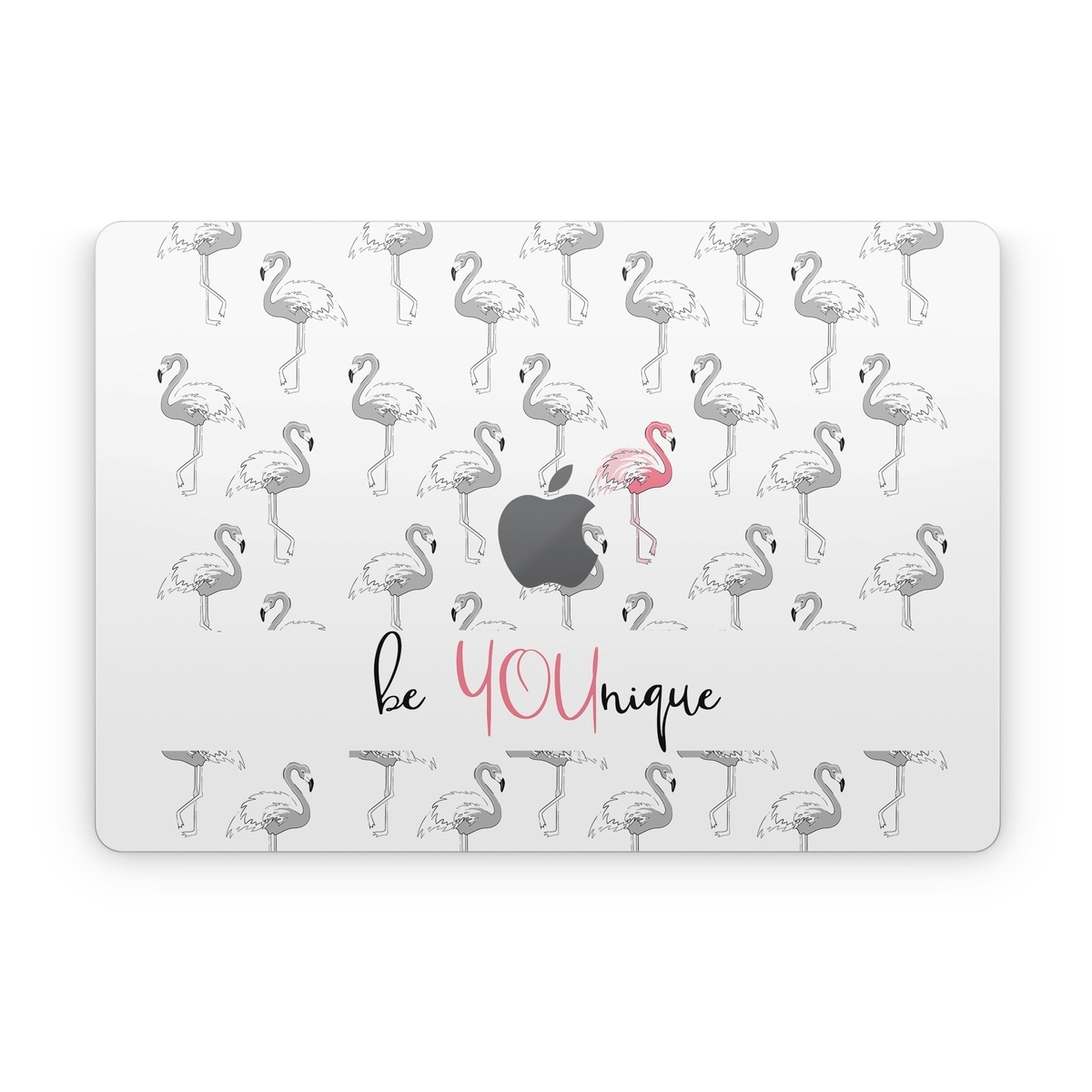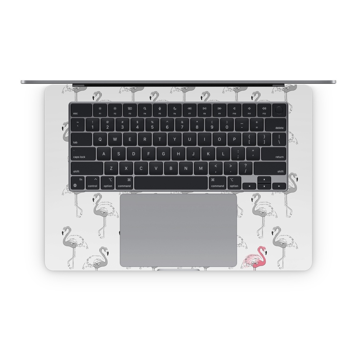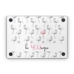 iStyles Apple MacBook Skin design of White, Organism, Mushroom, Line, Font, Bird, Art, Illustration, Pattern, Line art, with white, black, pink, gray colors, and tagged with signs, animals, patterns, bird, flamingo, grey, pink.