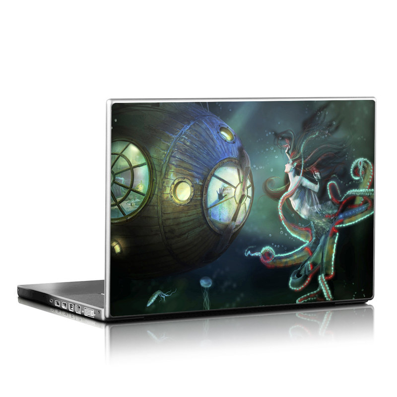 iStyles Universal Fit Laptop Skin design of Cg artwork, Illustration, Art, Fictional character, Fiction, Space, Fractal art, Graphic design, Mythology, Graphics, with black, gray, blue, green colors, and tagged with people, objects, fantasy, fantasy, mermaid, mythicalcreature, ocean, seacreature, sealife.
