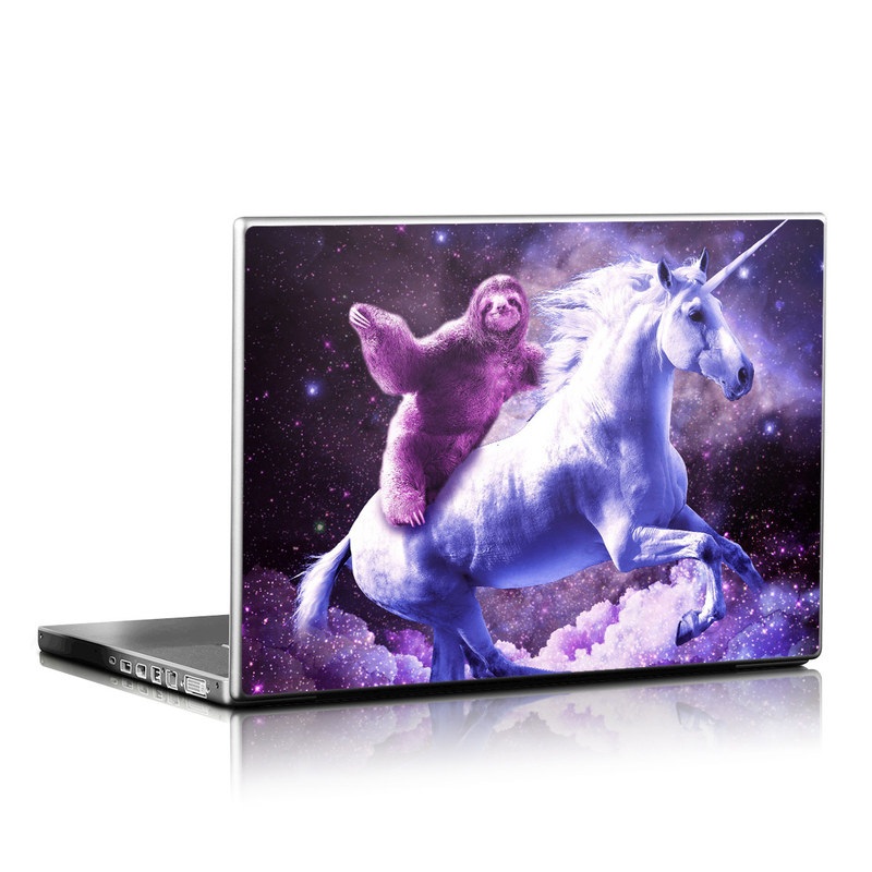 iStyles Universal Fit Laptop Skin design of Purple, Unicorn, Fictional character, Violet, Mythical creature, Illustration, Sky, Graphic design, Space, Constellation, with black, white, blue, purple, gray, brown colors, and tagged with space, animals, fantasy, animals, funny, galaxy, lasers, random, space, weird.