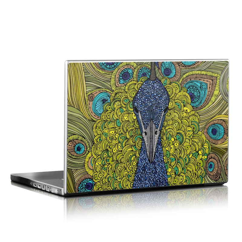 iStyles Universal Fit Laptop Skin design of Peafowl, Bird, Feather, Pattern, Art, Phasianidae, Galliformes, Design, Psychedelic art, Symmetry, with green, blue, yellow colors, and tagged with animals, patterns, animals, feathers, peacock, feathers.