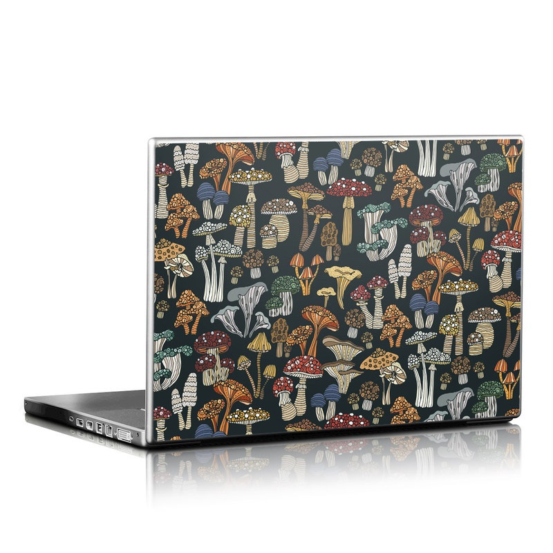 iStyles Universal Fit Laptop Skin design of Brown, Textile, Sleeve, Art, Font, Pattern, Collage, Painting, Illustration, Event, with black, white, blue, red, yellow, orange colors, and tagged with patterns, objects, fungi, mushrooms, pattern.