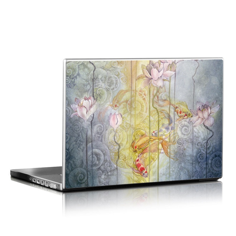 iStyles Universal Fit Laptop Skin design of Watercolor paint, Painting, Art, Yellow, Flower, Acrylic paint, Floral design, Visual arts, Modern art, Illustration, with blue, red, orange, pink, yellow colors, and tagged with animals, flowers, fish, flowers, lotus.