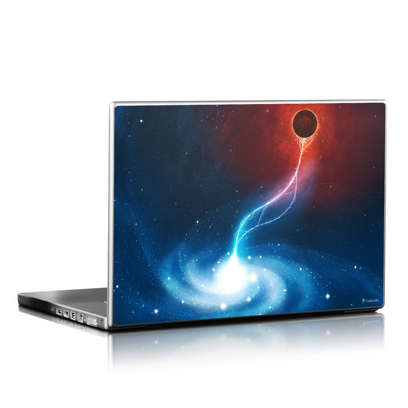 iStyles Universal Fit Laptop Skin design of Outer space, Atmosphere, Astronomical object, Universe, Space, Sky, Planet, Astronomy, Celestial event, Galaxy, with blue, red, black colors, and tagged with space, fantasy.