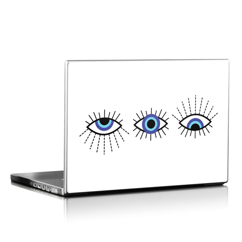 iStyles Universal Fit Laptop Skin design of Eyebrow, Eyelash, Iris, Art, Font, Circle, Electric blue, Symmetry, Illustration, Graphics, with black, white, blue, purple colors, and tagged with signs, people, blue, evileye, eye.