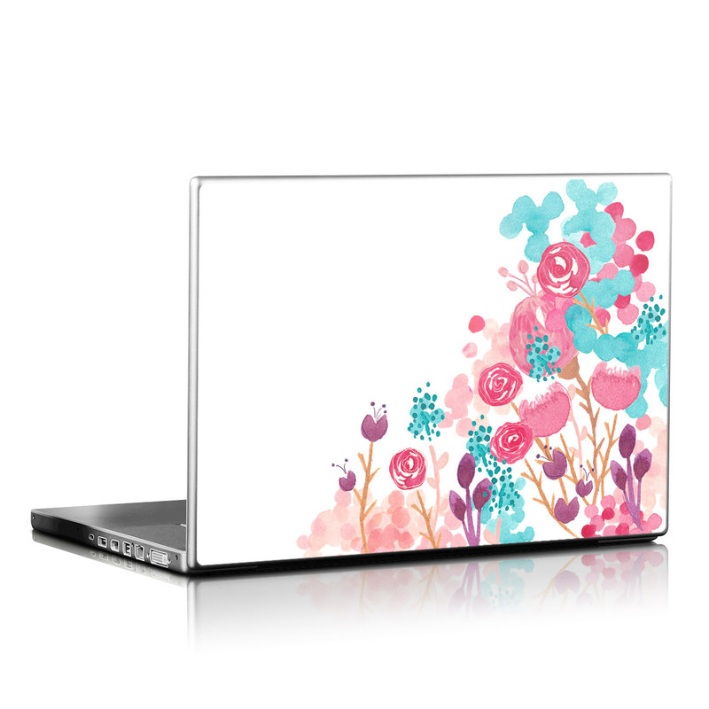 iStyles Universal Fit Laptop Skin design of Pink, Pattern, Design, Illustration, Clip art, Plant, Graphics, Art, with white, pink, purple, blue, red colors, and tagged with flowers.