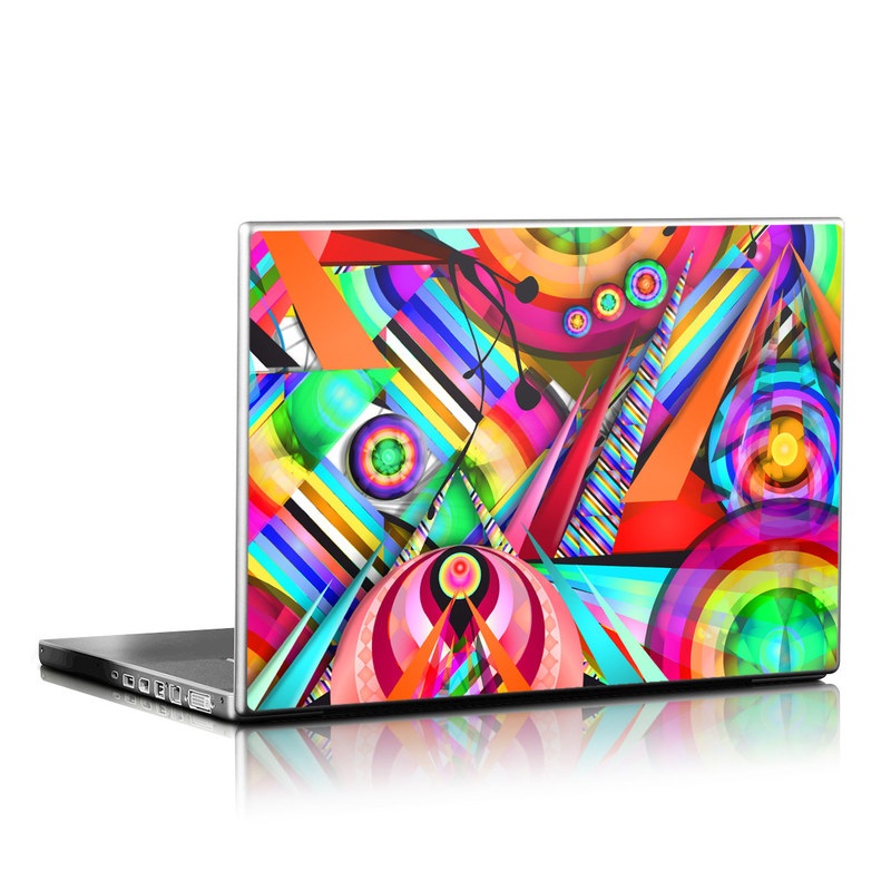 iStyles Universal Fit Laptop Skin design of Psychedelic art, Pattern, Design, Graphic design, Colorfulness, Visual arts, Circle, Art, with red, pink, green, yellow, orange colors, and tagged with patterns, abstract.