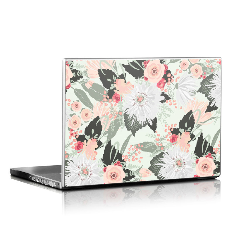 iStyles Universal Fit Laptop Skin design of Pattern, Pink, Floral design, Design, Textile, Wrapping paper, Plant, Peach, Flower, with green, red, white, pink colors, and tagged with patterns, flowers, nature, bouquet, filigree, floral, flower, flowers, leaf, leaves, pastel.