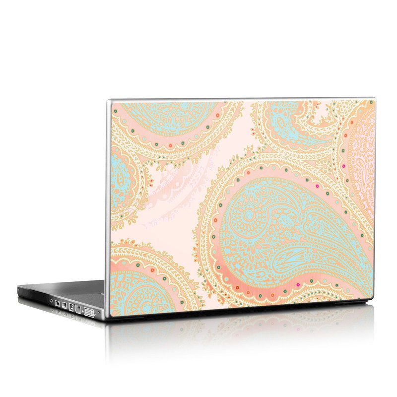 iStyles Universal Fit Laptop Skin design of Pattern, Visual arts, Paisley, Pink, Design, Motif, Line, Wallpaper, Peach, with pink, blue, red colors, and tagged with patterns, flowers, brightcolors, girly, paisley, pattern, pink.