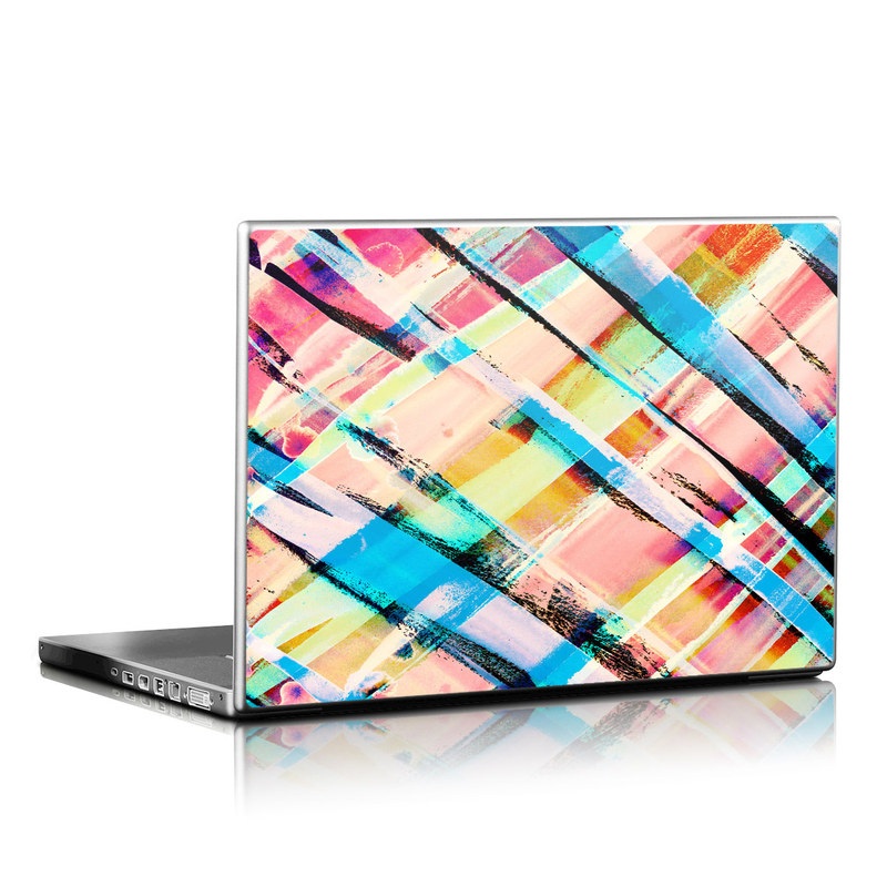iStyles Universal Fit Laptop Skin design of Line, Pattern, Turquoise, Plaid, Orange, Colorfulness, Design, Textile, Tints and shades, with blue, pink, red, purple, yellow, orange colors, and tagged with patterns, abstract, bright, pastel, stripes, watercolor.