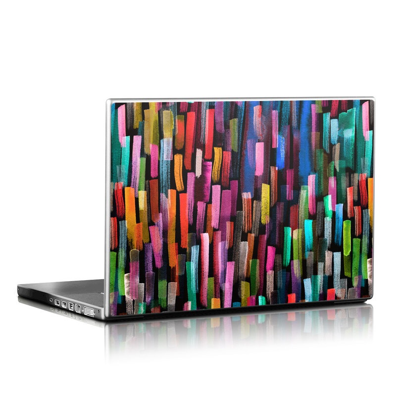 iStyles Universal Fit Laptop Skin design of Colorfulness, Textile, Art, Wood, Line, Material property, Font, Pattern, Tints and shades, Magenta, with black, blue, green, red, pink, yellow, orange, white, gray colors, and tagged with patterns, watercolors, brush, patterns.