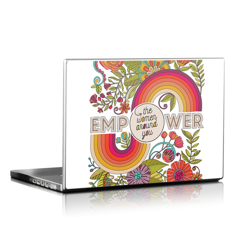 iStyles Universal Fit Laptop Skin design of Botany, Flower, Font, Creative arts, Petal, Circle, Pattern, Art, Visual arts, Floral design, with white, red, yellow, orange, green, blue colors, and tagged with flowers, signs, flowers, rainbow, empower, women, around, you.