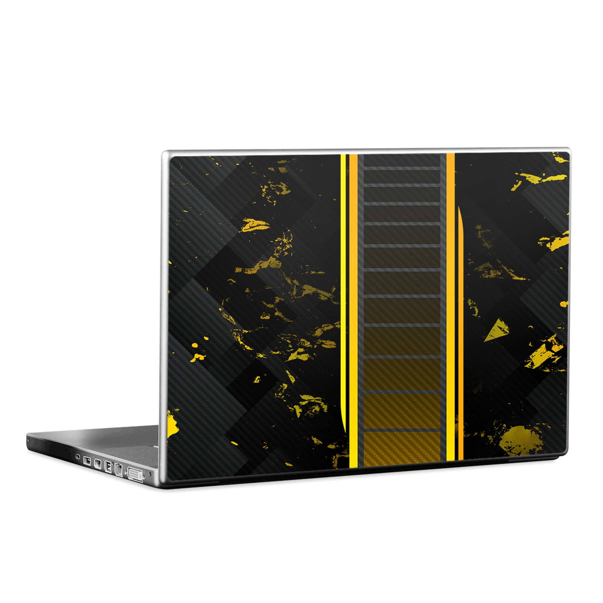 iStyles Universal Fit Laptop Skin design of Yellow, Plant, Font, Symmetry, Terrestrial plant, Tower block, Parallel, Pattern, Tints and shades, Rectangle, with black, yellow, gray, orange colors, and tagged with patterns, stripes, lines, markings.