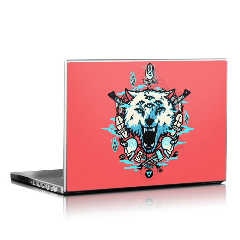 iStyles Universal Fit Laptop Skin design of Graphic design, Illustration, Crest, Logo, T-shirt, Symbol, Font, Graphics, Emblem, Pattern, with red, blue, black, gray colors, and tagged with animals, objects, signs.