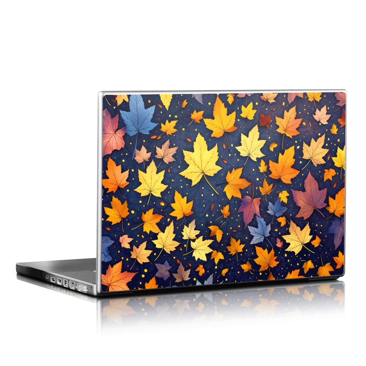 iStyles Universal Fit Laptop Skin design of Orange, Line, Pattern, Electric blue, Symmetry, Groundcover, Flowering plant, Design, Flower, Art, with yellow, orange, red, black, blue, purple colors, and tagged with nature, patterns, autumn, fall, leaves.