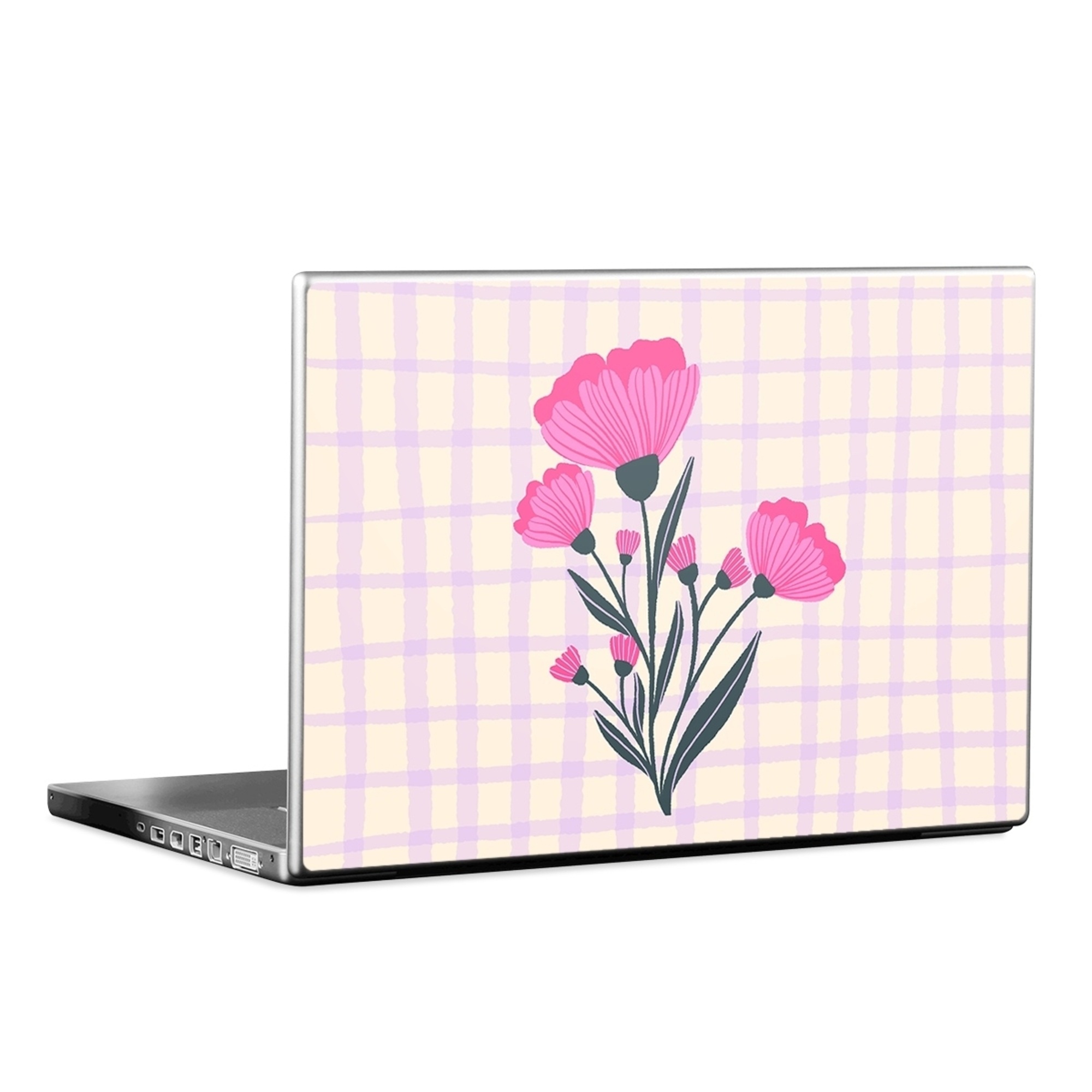 iStyles Universal Fit Laptop Skin design of Flower, Plant, Petal, Product, Dishware, Textile, Creative arts, Pink, Art, Magenta, with white, green, pink, purple colors, and tagged with flowers, patterns, bouquet, pink.