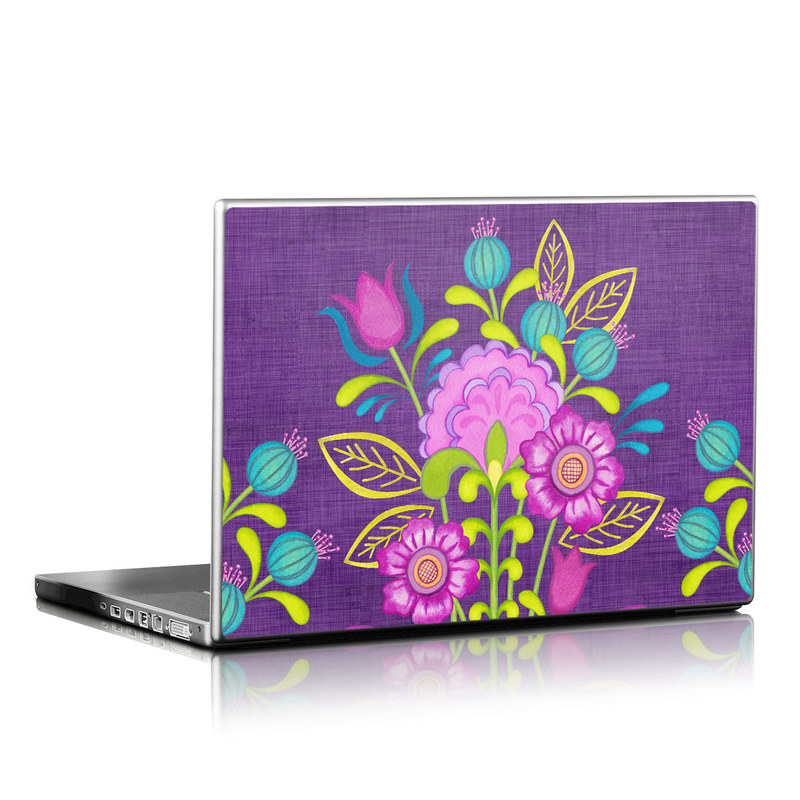 iStyles Universal Fit Laptop Skin design of Flower, Pattern, Plant, Violet, Botany, Visual arts, Design, Floral design, Art, Magenta, with blue, purple, green, gray, red colors, and tagged with flowers.