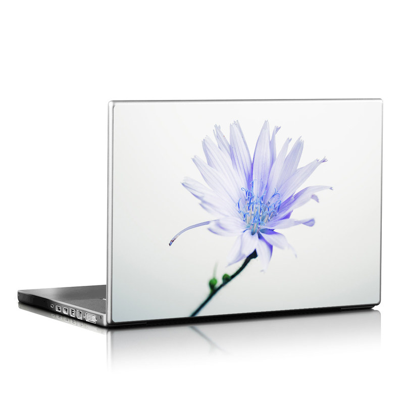 iStyles Universal Fit Laptop Skin design of Blue, Flower, Plant, Petal, Close-up, Macro photography, Flowering plant, Herbaceous plant, Wildflower, Photography, with gray, white, yellow colors, and tagged with flowers.