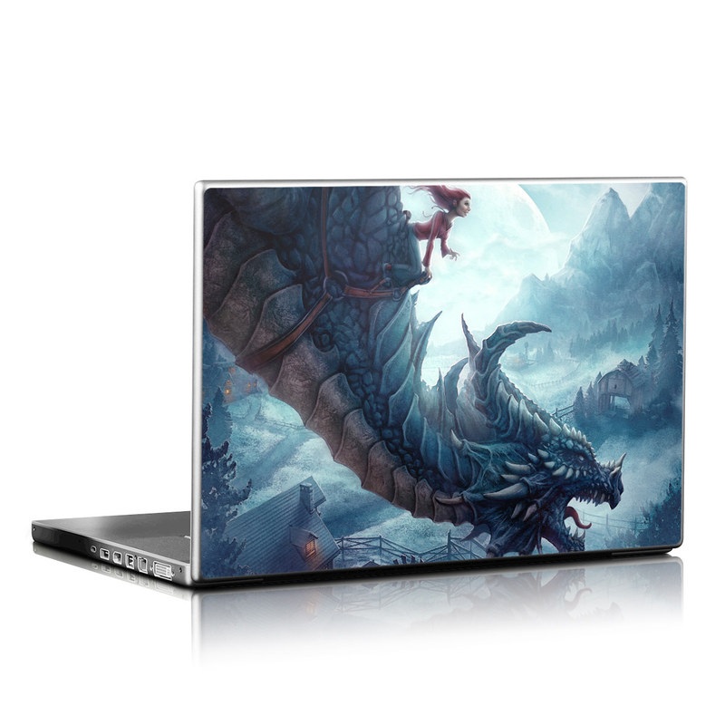 iStyles Universal Fit Laptop Skin design of Dragon, Cg artwork, Illustration, Action-adventure game, Fictional character, Mythical creature, Mythology, Fiction, Cryptid, Extinction, with blue, white, brown, green colors, and tagged with fantasy, animals, people, nature, urban, dragon, fantasy, girl, night, woman.