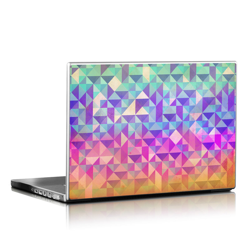 iStyles Universal Fit Laptop Skin design of Pattern, Purple, Triangle, Violet, Magenta, Line, Design, Symmetry, Psychedelic art, with gray, purple, green, blue, pink colors, and tagged with patterns.